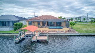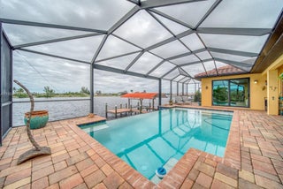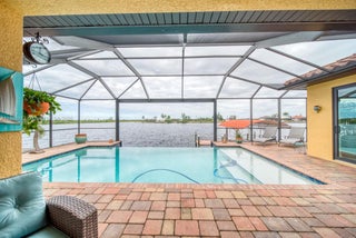 Welcome to your slice of paradise in sunny Cape Coral! This beautiful 3-bedroom, 3-bathroom ranch home with an office/den offers luxury living and stunning waterfront views. Enjoy seamless indoor-outdoor living with impact-resistant windows and 90° disappearing sliders that open to a screened lanai and disappearing-edge pool overlooking the lake canal. With unrestricted Gulf access, a 10,000 lb boat lift, and jet ski lift, it’s perfect for boaters. The master suite and office feature French doors, while the open living area is ideal for entertaining. Complete with a solar and electric pool heater, 3-car garage, and furnishings included, this home is move-in ready and offers the ultimate Southwest Florida lifestyle—combining luxury, comfort, and privacy in one exceptional package.