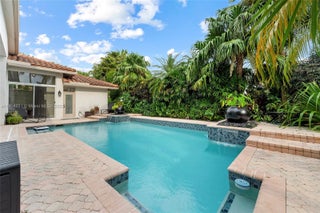 Beautifully updated 5-bed, 4-bath Regency model home in Weston Hills CC. Lush professionally enhanced landscaping and a fully fenced yard. Features include real wood floors in the living areas, marble flooring in all bedrooms, a 2016 granite kitchen, and all renovated (2020) baths, including a spa-style primary suite with porcelain tile and a vessel tub. Enjoy an oversized pool with Diamond Brite treatment, fountains, a paver patio, and a private seating area. Upgrades include a 2018 roof, two new A/C units, a new water heater, hurricane panels, gutters, an EV charger, a Hurricane Impact garage door, and Hunter Douglas blinds. Located near A+ schools and within walking distance to the community park.