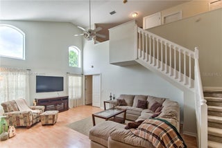 Welcome home to this immaculate pool retreat in the sought-after, no-CDD community of Kings Lake! Bright & open floor plan with a chef’s kitchen featuring SS appliances, granite counters & large island. Spacious owner’s suite with walk-in closet, dual sinks, walk-in shower & garden tub. Upstairs offers 2 bedrooms, bath & a loft easily converted to a 4th bedroom. Enjoy new impact windows/doors, solar panels, gutters & fresh paint. Relax in your resort-style pool oasis! Roof 2022. Low HOA, close to I-75, Tampa & Sarasota beaches.