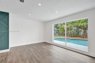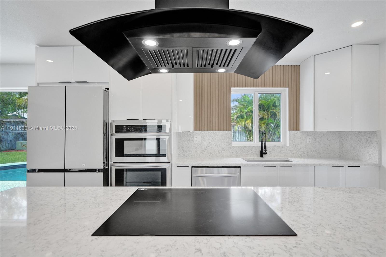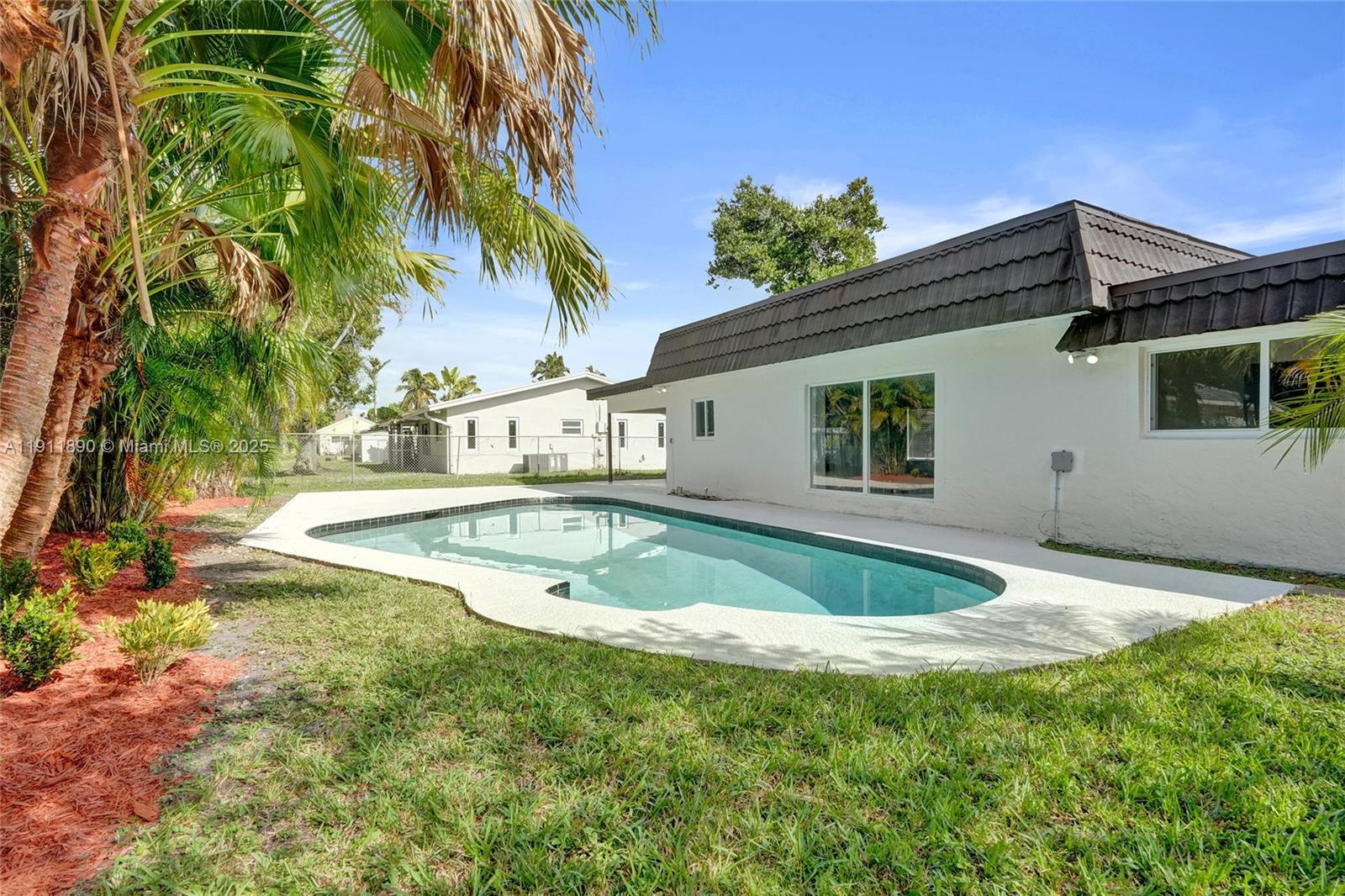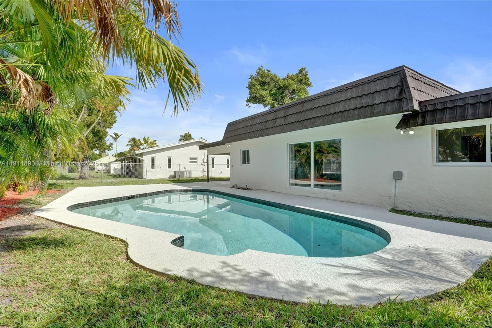Fully renovated 4-bedroom, 2-bath pool home in the heart of Tamarac! This stunning modern residence features all-new electrical, impact windows and doors, and a bright open-concept design with luxury vinyl flooring throughout. The garage has been converted into a spacious 4th bedroom, ideal for guests or a home office. The custom kitchen offers sleek European cabinetry, quartz waterfall island, and top-quality appliances. Enjoy the amazing view of the pool from the living area and main bedroom. Beautiful designer bathrooms, new washer/dryer, and a large fenced backyard with tropical landscaping complete this move-in-ready home. Perfect blend of style, comfort, and convenience! HOA only $145 per YEAR