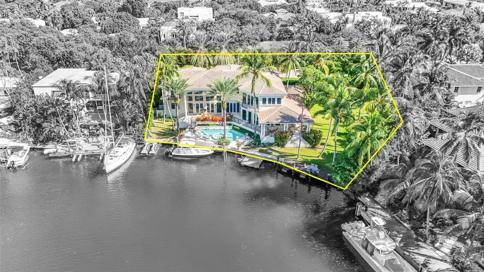 Situated on the exclusive island of Key Biscayne, this extraordinary 7,000sqft waterfront estate sits on a rare double lot located on Hurricane Harbor overlooking tranquil Manatee Lagoon. The property offers an unparalleled sanctuary of luxury and seclusion with features including a 4 car garage ideal for collectors, professionally landscaped yard well suited for outdoor entertaining, 7 bedrooms and 7.5 baths including live-in quarters. Expansive living areas flow seamlessly to large outdoor, covered porches becoming your al fresco living room for outdoor dining or relaxing and soaking in the beauty of the natural environment. As the sun hits the horizon, Sunsets light up the sky illuminating the clouds in a breathtaking array of tropical colors. Text listing agent. 24hr notice