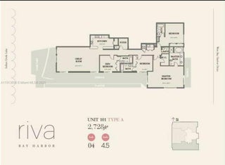 Your chance to live in a luxurious, waterfront 4 bed 4.5 bath residence in over 2,700 SF. First floor, front-to-back unit feels very much like a townhome without the stairs. Class abounds from the gorgeous lobby to the 24 hour doorperson, valet parking, private gym, rooftop pool and jacuzzi. Only 25 owners get to call Riva home! Enjoy all the privacy and light of a single famliy home with the convenience and security of a boutique condo. Primary bedroom suite features sitting area, tub and shower! All 4 bedrooms feature full en-suite baths and three have sliding doors to your private outdoor living area where you can entertain, kayak, paddleboard, or be picked up by yacht! 2 Parking spots Extra storage Start living in Bay Harbor within the Billionaire Circle and by the Bal Harbour Beaches!