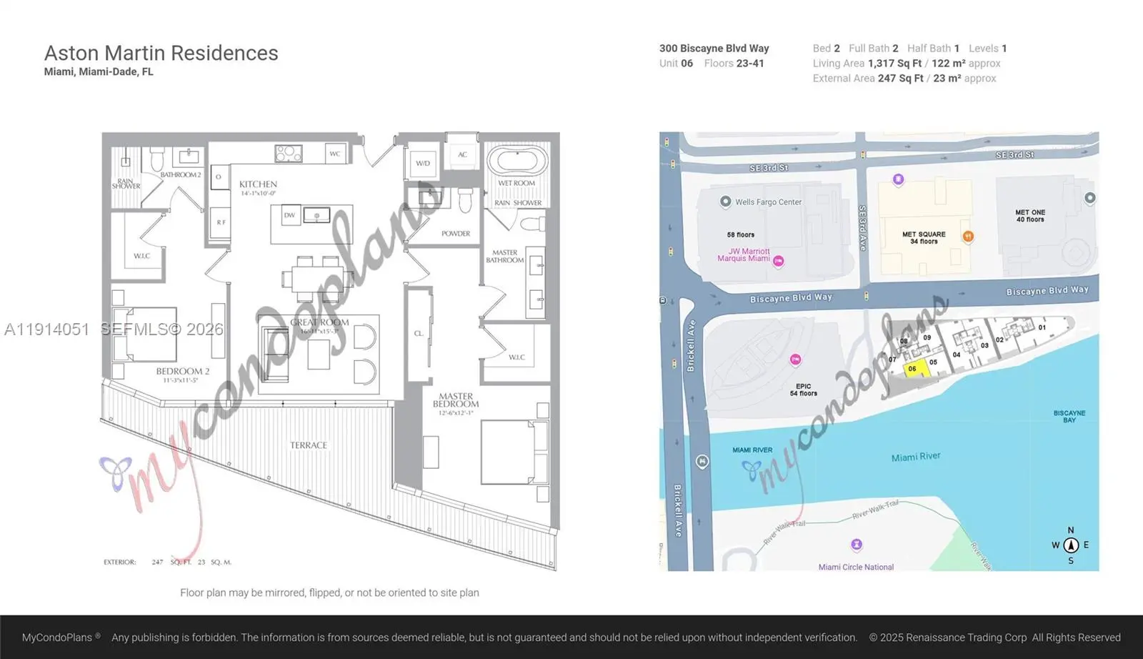 Live the ultimate Miami lifestyle where architecture, luxury, and waterfront magic collide. This remarkable 2 bedroom /2.5 bath at the iconic Aston Martin Residences offers panoramic bay, river, ocean and Miami skyline views through floor-to-ceiling glass. (1317- actual sqft) Enjoy an effortlessly elegant open split floor plan w/natural light throughout, chef-caliber kitchen with premium finishes, marble floors, high ceilings, spa-inspired baths with freestanding tub and rain shower in master, spacious closets, and a private balcony floating above the water. Residents indulge in a full service building with four levels of unmatched amenities - sky pool, wellness spa, two-level fitness center, lounges, virtual golf, art gallery, elite consierge and marina. Located at the edge of Downtown Miami and Brickell.