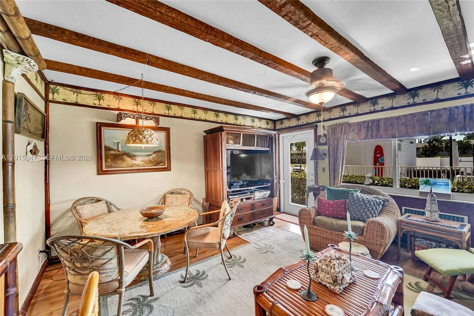 Experience the ultimate coastal lifestyle in this vibrant 1 bedroom, 1 bathroom 55+ community at Diplomat Gardens. Located just one block east of US-1, you are minutes from the beach, shops, and dining! -Immersive 'Margaritaville' decor with termite-resistant Teak/Cypress-style wood accents and charming tropical details. The ceiling beams are crafted from painted foam to mimic wood, beautifully decorating this co-op. Modern Upgrades: Includes elegant granite countertops, an electric stove, and an efficient tankless water heater. Safety & Efficiency: Features impact doors and windows for storm protection. No rentals nor pets are allowed This is your perfect, move-in-ready place for you to enjoy! Motivated Sellers!