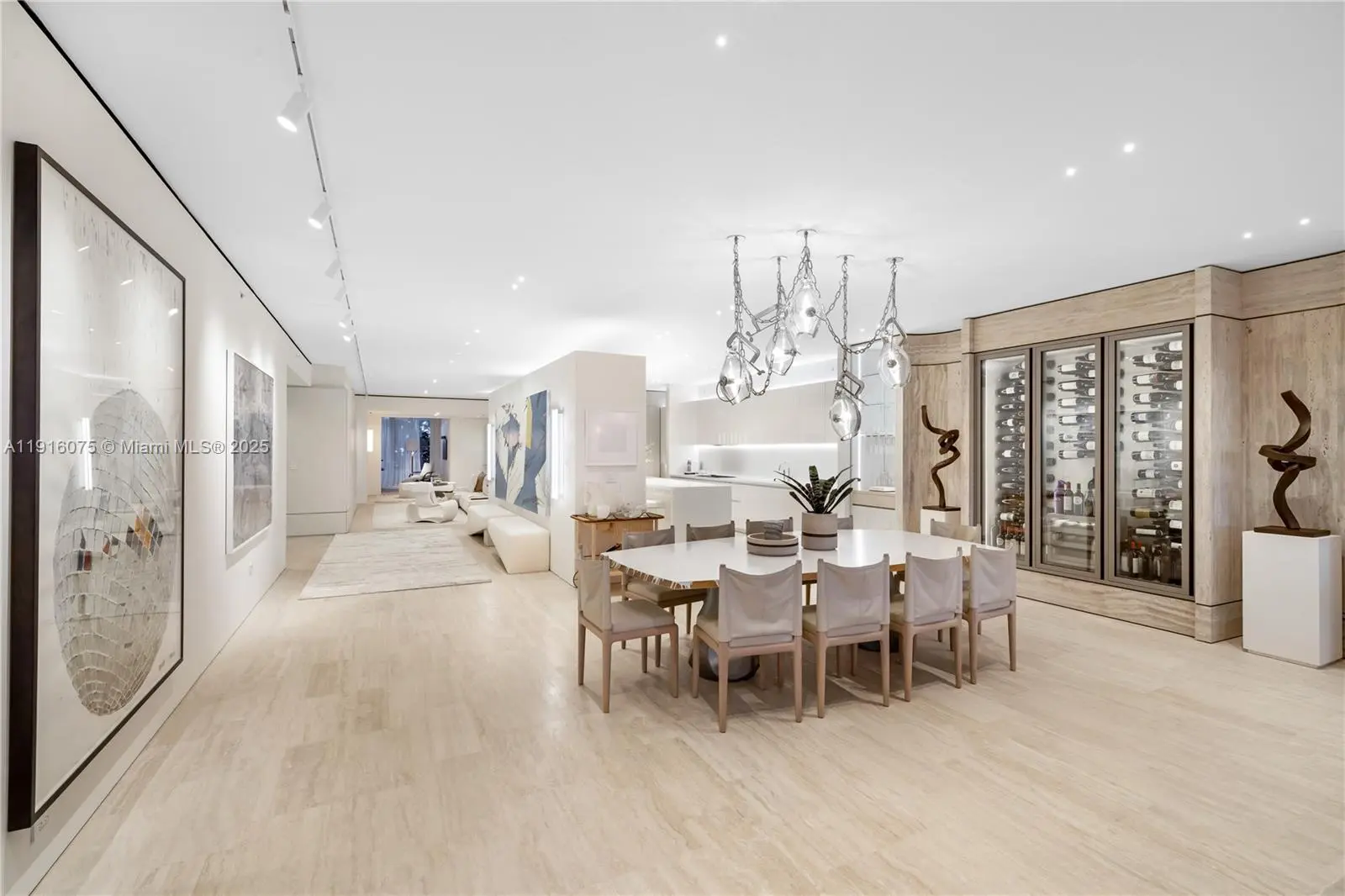 A rare offering at The Surf Club Four Seasons, this flow-through residence spans over 4,600 SF & completely reimagined by designer Deborah Wecselman. Delivered turn-key, the home features sunlit living areas with custom millwork throughout, a bespoke travertine wine cellar & a private foyer that creates a true sense of arrival. The open Boffi kitchen is appointed with Corian countertops & seamlessly integrated appliances, complemented by Lualdi frameless doors & Boffi vanities. A fully upgraded AV & smart-home system enhances ease of living, while exquisite designer furnishings complete the modern coastal aesthetic. As part of The Surf Club, residents enjoy unmatched amenities including 3 swimming pools, state-of-the-art fitness center, hammam & spa, 24h services & dining by Thomas Keller.