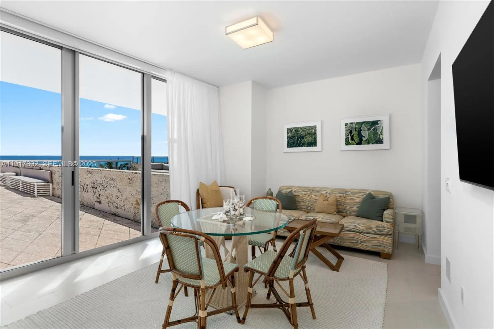 Discover a rare opportunity at one of Miami Beach’s most distinguished wellness resorts. This highly sought-after corner residence in the North Tower of the Carillon offers exceptional indoor-outdoor living, with an expansive private terrace overlooking the ocean. Upon entry, you will be welcomed by an open floor plan and floor-to-ceiling windows that open onto a sweeping terrace, providing an ideal setting for sunlit mornings or twilight entertaining with the stunning ocean backdrop. The chef’s kitchen is equipped with premium Miele appliances, a Sub-Zero refrigerator, and a double-drawer refrigerator, ensuring top-of-the-line functionality. This private residence boasts custom cabinetry throughout, meeting the highest standards in design and function. In the primary suite, double sliding glass doors invite in refreshing sea breezes and natural light. The spa-inspired bathroom features dual vanities, a glass-enclosed shower, a soaking jacuzzi tub, and thoughtfully upgraded finishes and millwork. Additionally, this residence is delivered fully furnished with curated pieces from Maison Louis Drucker (France) and Bonacina 1889 (Italy), as well as outdoor furniture from Janus et Cie., brands renowned for their artisanal craftsmanship and heritage design. Residents of the Carillon Wellness Resort enjoy over 750 linear feet of pristine beachfront, multiple full-service pools, a full-service beach, an award-winning spa and wellness center, and a 24-hour attended lobby.
