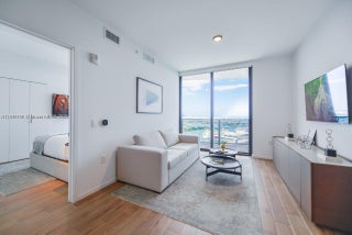 Welcome to THE ELSER Residences! This beautifully furnished one-bedroom unit with a rare direct water view is available for rent. Enjoy luxury features like quartz countertops and elegant wood-grain tile flooring. Fully equipped kitchen and modern bathrooms make for comfortable living. Experience Downtown Miami's vibrant spirit and top-notch amenities right at your doorstep in this extraordinary rental residence.