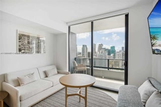 A distinctive and luxurious furnished 1-bedroom, 1-bathroom residence available for short-term/daily rentals in the vibrant heart of Downtown Miami. This newly constructed unit boasts sweeping views of the Miami skyline and Biscayne Bay, highlighted by soaring ceilings and expansive floor-to-ceiling windows. Thoughtfully designed for modern living, the smart building offers advanced technology and high-speed internet. Residents enjoy an array of top-tier amenities, including a state-of-the-art fitness center, resort-style pool and spa, social lounge, kids' playroom, sauna, and three on-site dining venues.