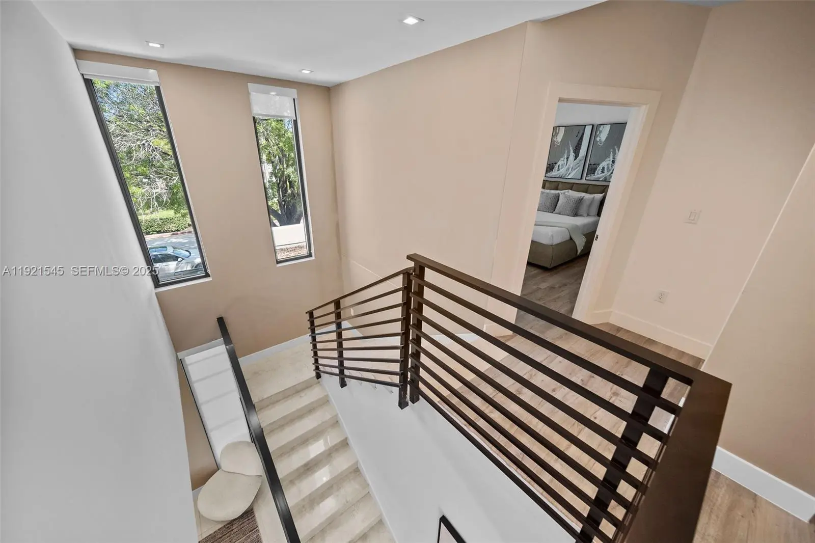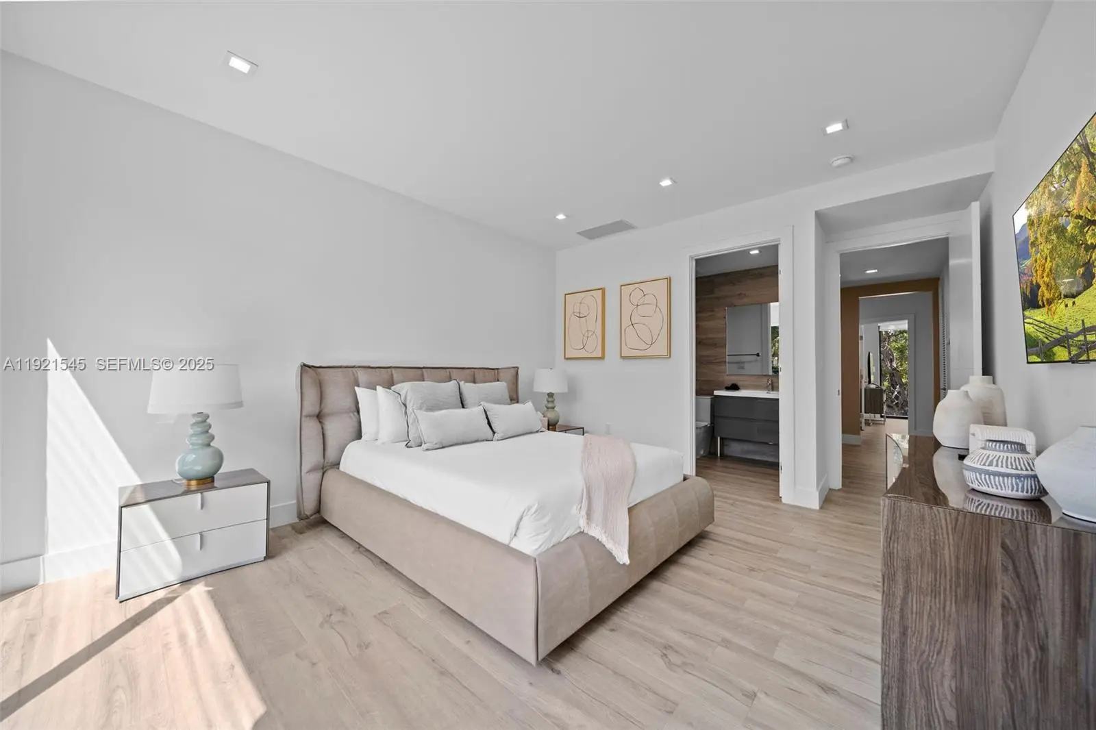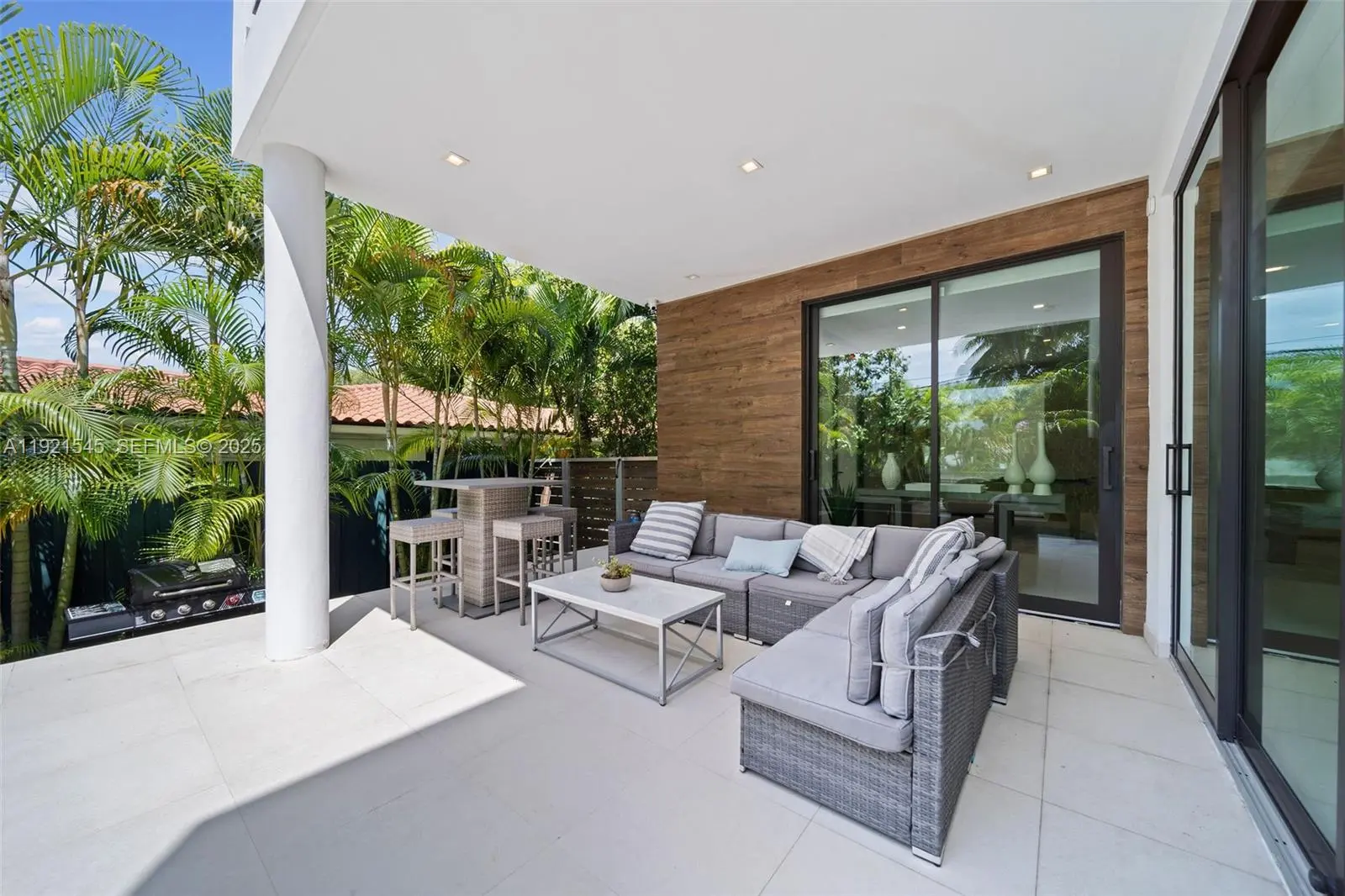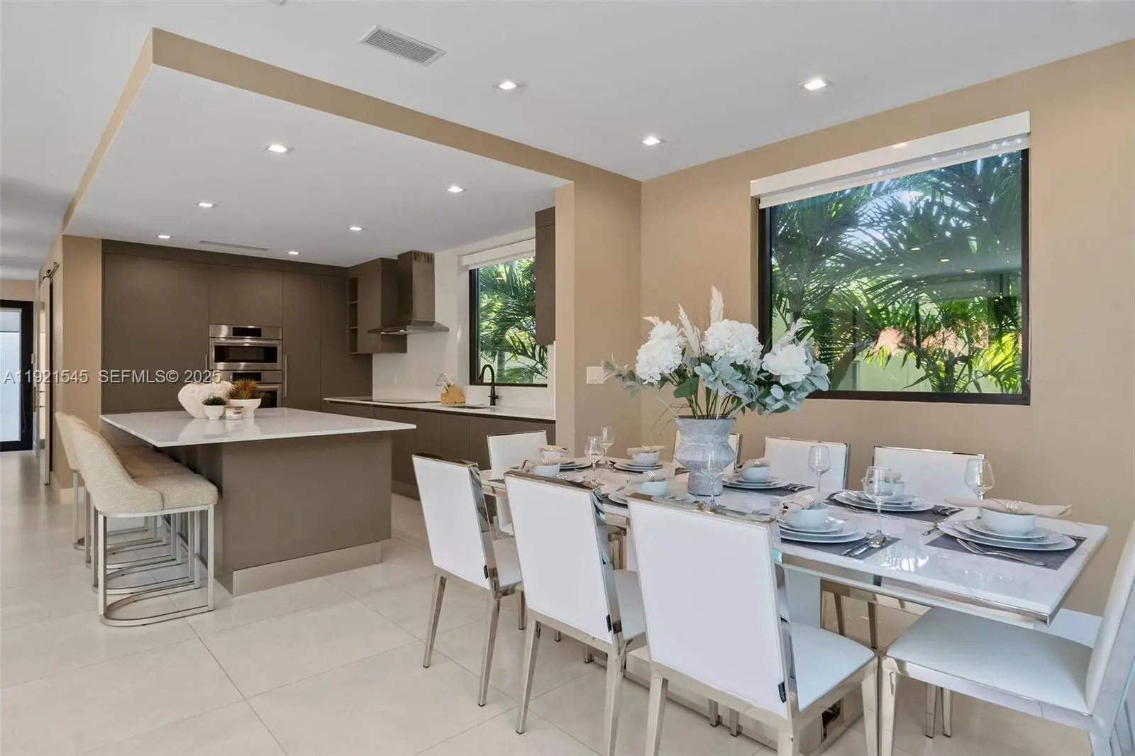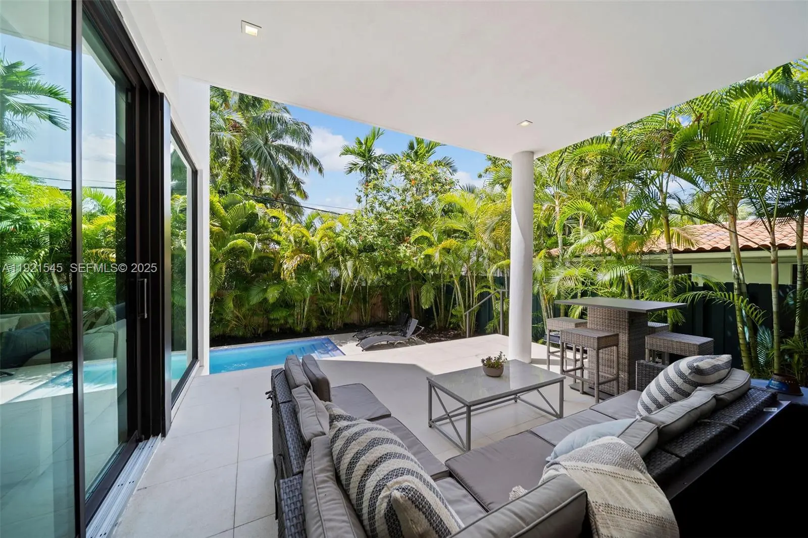 Experience contemporary elegance at its finest in this extraordinary two-story Miami Beach residence, thoughtfully designed to blend luxury living with the tranquility of lush tropical surroundings. Meticulously maintained, this 5-bedroom, 5.5-bath home offers over 3,200 SF of sophisticated interior living space. In one of Miami Beach's most desirable residential neighborhoods, backing prestigious North Bay Road. Bright, open-concept floor plan with oversized floor-to-ceiling windows that frame the beautifully landscaped greenery and flood the entire home with natural light. The main level features spacious living and dining areas, and seamless indoor-outdoor flow ideal for hosting. The gourmet chef's kitchen is fully equipped with premium appliances, including new cooktop, modern hood, double wall ovens, expansive quartz countertops, and custom cabinetry. An oversized island with seating creates the perfect gathering space for family and friends. Upstairs, four generously sized bedrooms each include en-suite bathrooms for ultimate privacy and convenience, while a fifth bedroom on the main level is ideal for guests or a home office. Retreat to your private backyard sanctuary an entertainer's dream. Enjoy a pool, sun deck, covered terrace, outdoor dining, and beautifully curated landscaping that creates complete privacy.