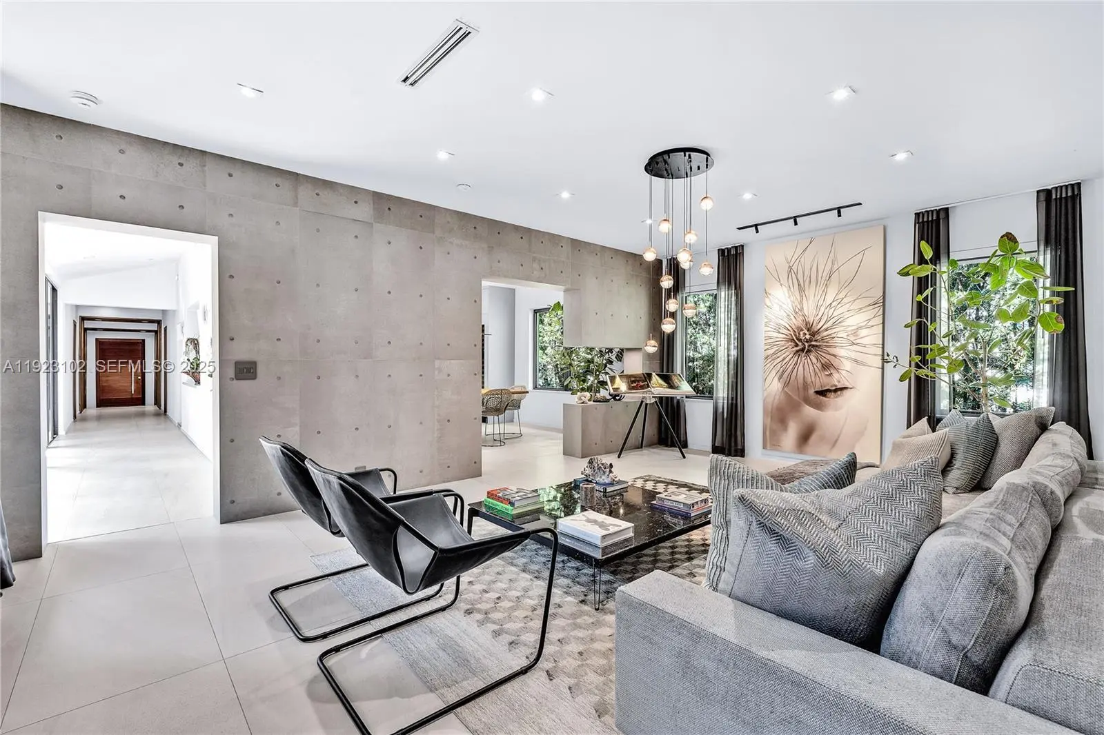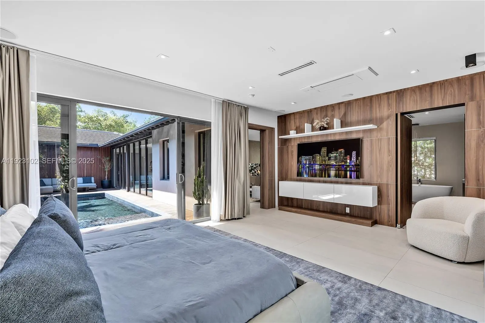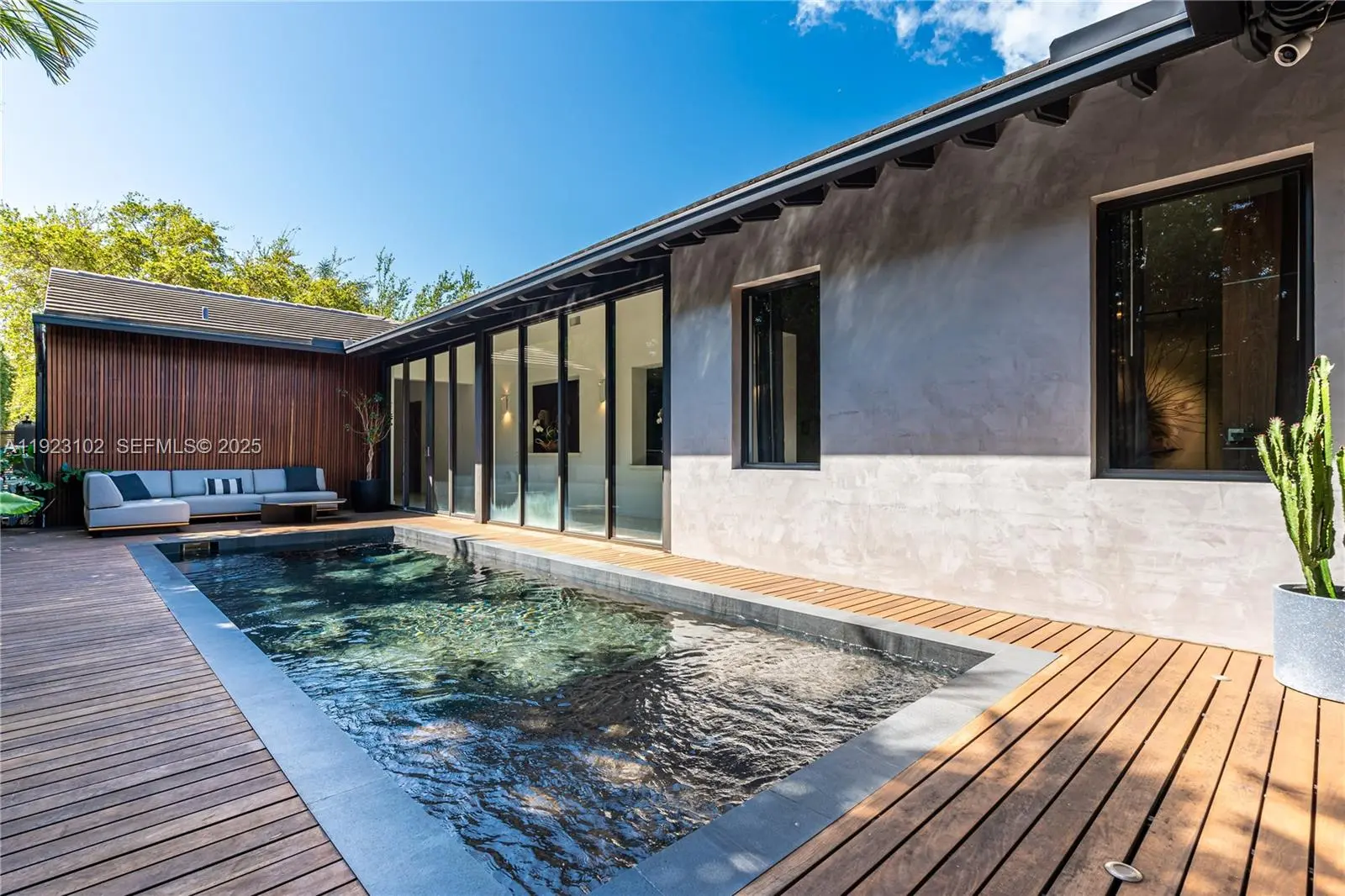 Tropical oasis in the heart of Miami Beach! This stunning modern home has been recently renovated with impeccable taste and premium appliances. The gorgeous pool area features a sleek, modern design surrounded by beautiful lush landscaping, creating a serene private retreat. The magnificent primary bedroom includes a secluded patio and an exquisite custom-made closet and bathroom. Two additional generously sized bedrooms each offer full en-suite bathrooms. Enjoy 11 ft. ceilings, Italian ceramic floors, and a Mia Cucina custom kitchen and closets throughout. Floor-to-ceiling window walls fill the home with natural light and provide seamless indoor-outdoor living. Located in an exceptionally safe neighborhood with little to no thru traffic, this property offers a peaceful, private environment ideal for families and anyone seeking a calm lifestyle. Fisher Park is just down the street, perfect for outdoor activities, while the home remains only a short drive from Miami Beach’s top restaurants, beach clubs, and entertainment. An unbeatable blend of tranquility and convenience.