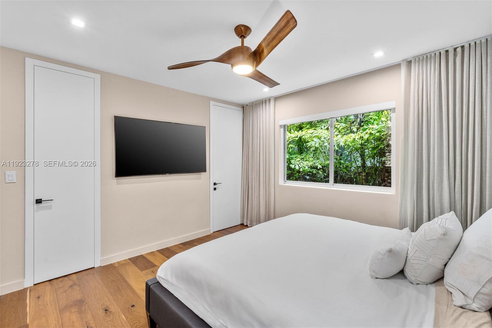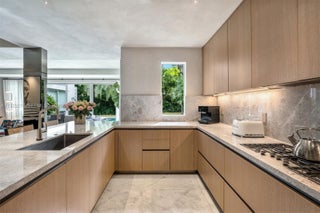 Contemporary modern home w/ stunning designer renovation in North Coconut Grove! This 5BD/5+2BA 3,379 SF residence sits on a lush 13,375 SF lot in a tree-lined neighborhood. The entryway flows seamlessly to the chic living & dining areas w/ marble flooring & floor-to-ceiling windows overlooking the serene backyard w/ resort-style pool, covered summer kitchen & cabana bath w/ outdoor shower. Custom kitchen w/ large eat-in counter, top-tier Miele appliances & custom Ital Kraft built-ins. The spacious principal suite boasts double-height vaulted ceilings, white oak floors, custom walk-in closet & spa-inspired bath w/ 2 vanities, large marble rain shower & separate soaking tub. 4 guest bedrooms w/ en-suite baths - including staff room. Incredible location near top schools, fine dining & shops.