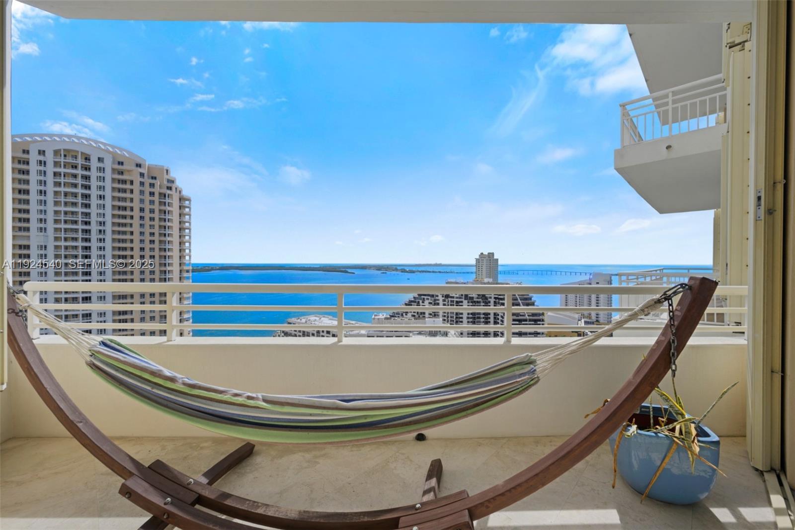 This Lower Penthouse at One Tequesta Point features a 2-bedroom, 2-bath layout with three balconies that showcase stunning views of Biscayne Bay and the Brickell skyline. Enjoy living in the private and secure community of Brickell Key. The residence offers marble and parquet flooring throughout, impressive 10-foot ceilings, and a well-designed split floor plan. The primary suite includes walk-in closets, while the bathroom offers dual vanities, a separate shower, and a soaking tub. The fully remodeled and spacious kitchen comes equipped with stainless steel appliances. The unit also includes one assigned parking space. One Tequesta Point is a full-service building with 24-hour security, a pool, spa, racquetball court, fitness center, and more. Brickell Key residents also enjoy access to parks, a scenic one-mile waterfront path around the island, plus upscale restaurants and local markets.