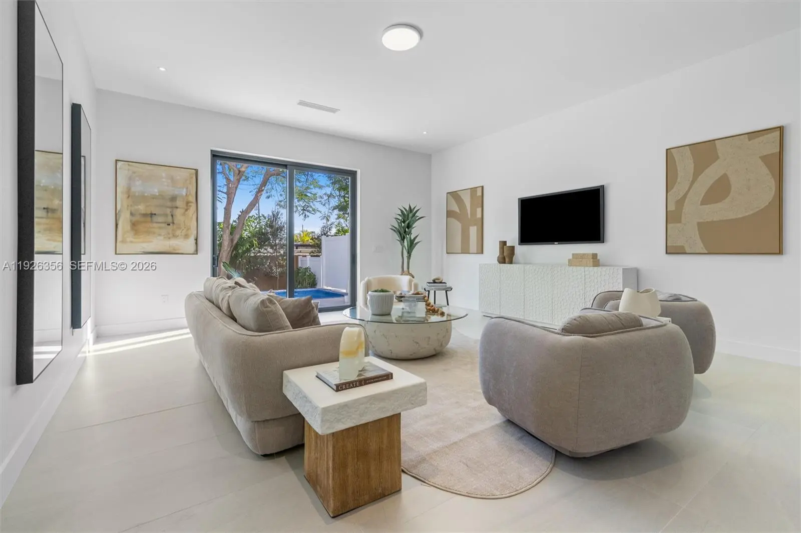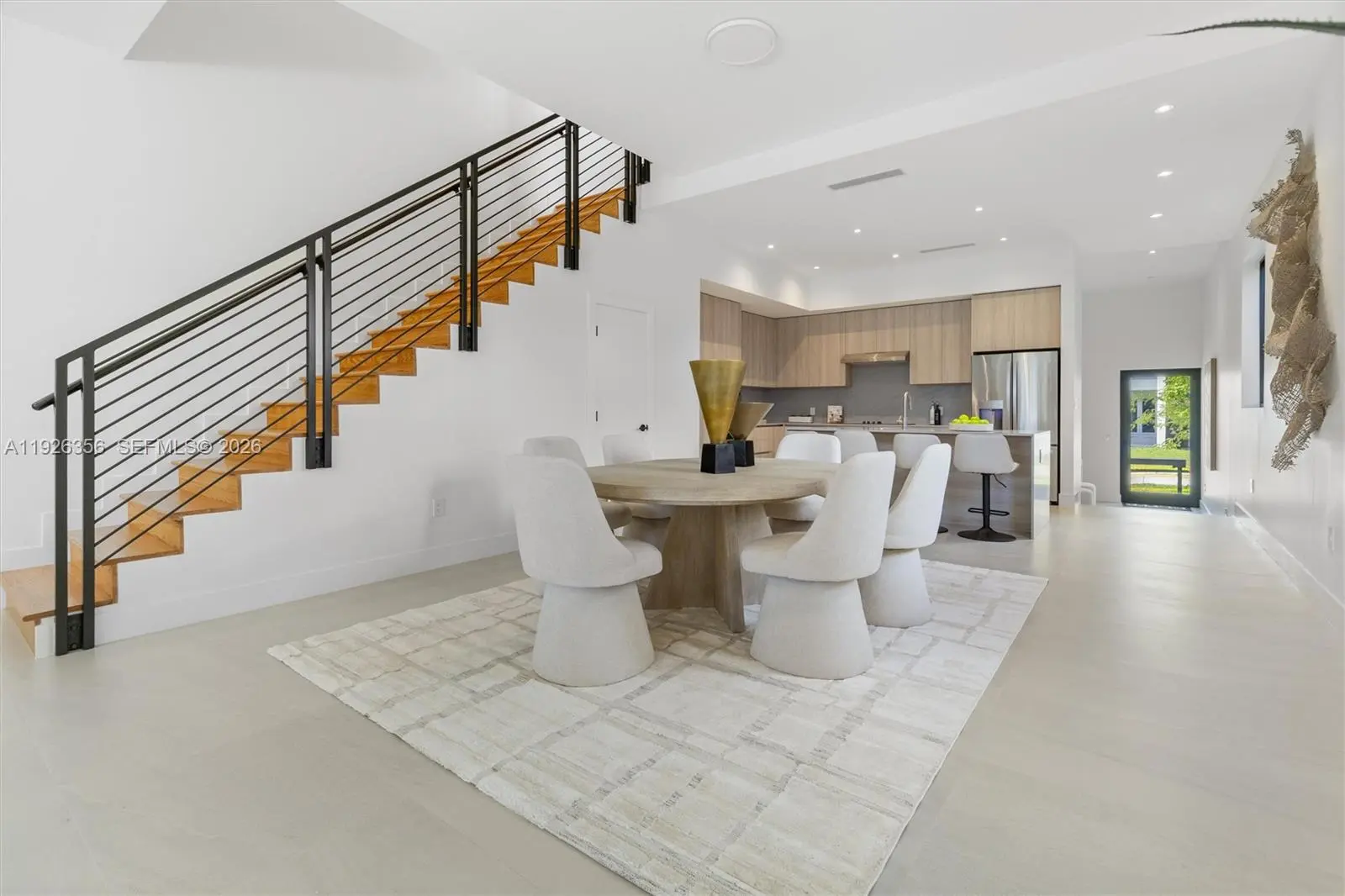 Modern new construction townhome offering luxury design. This 4 bedroom, 4.5 bath home features a bright open floor plan with porcelain tile floors, recessed lighting, and a sleek kitchen with custom cabinetry, quartz countertops, stainless appliances and large island. Sliding doors lead to a private patio and plunge pool. Spacious primary suite includes walk-in closets and spa style bath with soaking tub and glass shower. Impact windows, modern finishes, garage, and indoor laundry complete this contemporary Miami retreat.