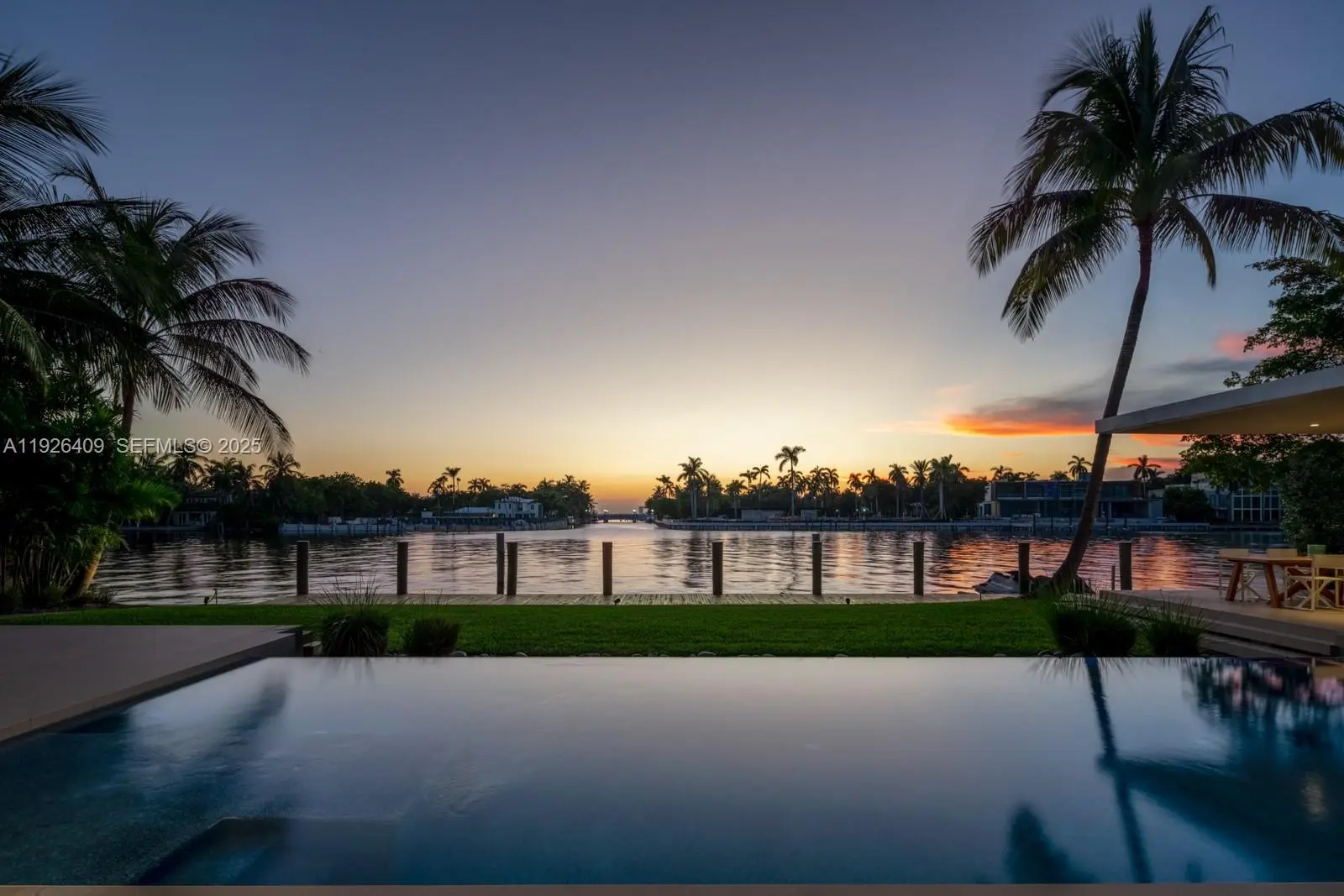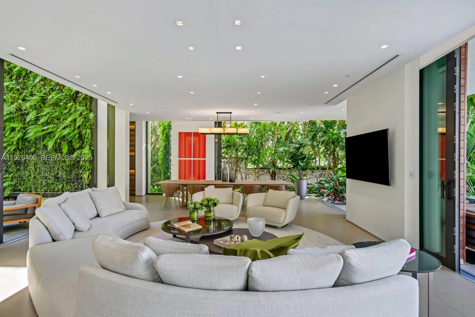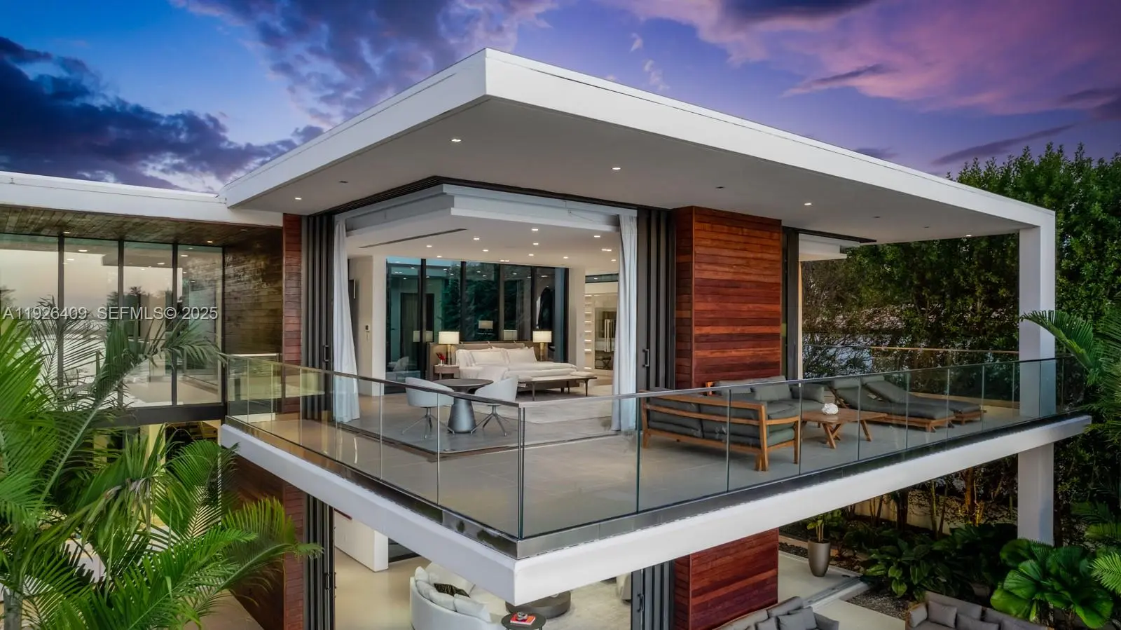 Tropical modern masterpiece on exclusive Allison Island, designed by acclaimed architecture & design firm Choeff Levy Fischman. The impressive residence spans 10,632 SF of interior space featuring 7 bedrooms, 9 full baths, and 2 half baths, a media room, wine cellar, and multiple living areas ideal for entertaining. The expansive primary suite includes dual spa-inspired baths, walk-in closets, a sitting area, floor-to-ceiling windows, and a private terrace offering stunning sunset views. Additional features include dramatic 22-foot ceilings, two family rooms, and a junior suite with a private terrace. The chef’s kitchen showcases custom Italian cabinetry with Sub-Zero and Wolf appliances, along with a separate staff/service kitchen and quarters. Situated on a 23,760 SF lot with 110 feet of water frontage, the home enjoys direct waterfront access and exceptional privacy. Allison Island offers one of Miami Beach’s most exclusive guard-gated communities, providing 24-hour security within an intimate luxury enclave.
