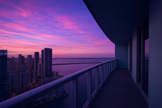 Soak in sunrise and sunset views from this 50th-floor corner Penthouse right on the water with over 1,900 sq ft of living space. This 3 bed, 2.5 bath Penthouse features wrap-around balconies, floor-to-ceiling glass, beautiful bay and city views, and an open layout. Located in a prime spot where you're easy to get everywhere—Midtown, Downtown, and the Beaches. Building includes 2 swimming pools, 2-story fitness center, theater room, valet, and dedicated parking.