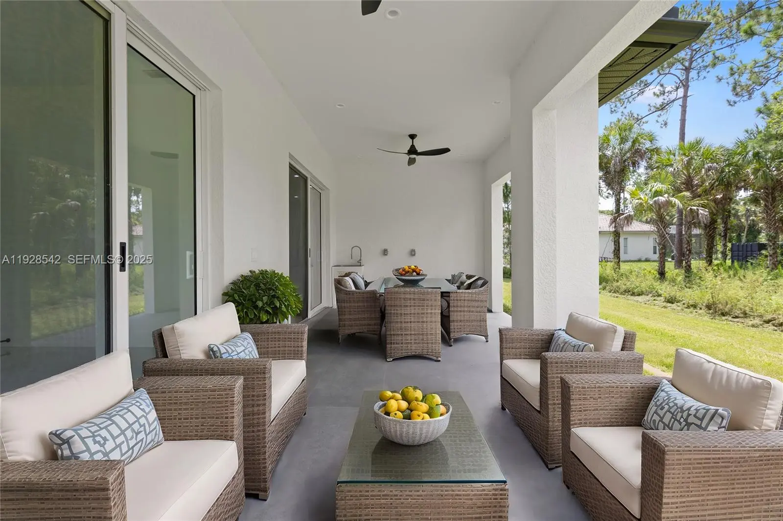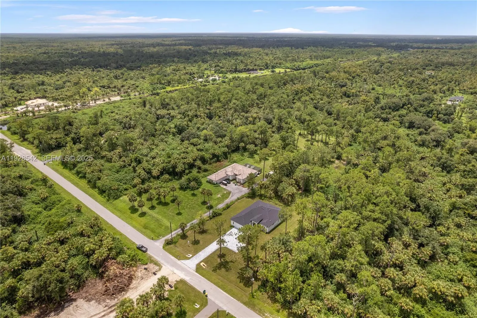 New 2023 Custom Home by Terranova Construction Group, set on an expansive 2.27-acre lot! This stunning property redefines modern living with 4 spacious bedrooms, 3.5 bathrooms, a versatile den, a 2-car garage, and an open-concept design filled with natural light. Built with the highest quality materials, the home features large impact windows and sliders that seamlessly connect the indoors to a generous lanai—perfect for enjoying Florida’s beautiful weather. The thoughtfully designed kitchen boasts modern finishes, premium stainless steel appliances, and ample space for entertaining. The primary suite is a serene retreat with dual custom closets, double vanities, a freestanding tub, and a separate shower. Every oversized bedroom offers custom closets and exceptional comfort. The laundry room is conveniently located inside of the home with a tub. This property is equipped with advanced features, including a smart communications panel, linear AC ventilation, a water purification system with reverse osmosis, and an EV charger with a 50 Amp outlet in the garage. With ample space on the 2.27-acre lot for a pool, gazebo, or guest house, this home offers endless possibilities. Located in a rapidly growing area just minutes from shopping centers, this exceptional residence combines luxury, innovation, and room to grow. Don't miss the opportunity to make this house your dream home! Schedule your showing today and experience Naples's finest living!