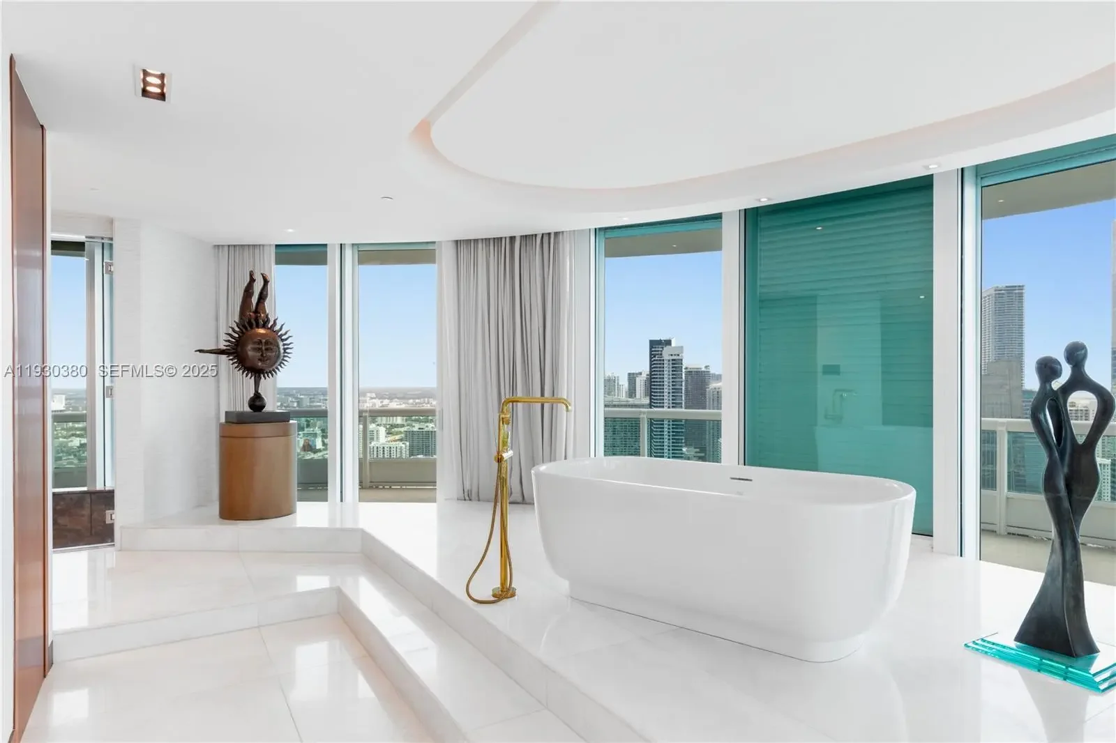 Rare opportunity to own an almost 15,000 SqFt waterfront Duplex PH on the 49 and 50 Floors with your own 97 Ft dock for your yacht and private rooftop terrace pool. Originally 7 bedrooms, remodeled, and currently configured as 3 primary bedrooms each with dual baths and sitting areas, can be easily converted back to increase bedrooms. The main primary bedroom features its own wing and spans over 1,800 SqFt. This architectural masterpiece faces East, North, and West, features double height ceilings, floor-to-ceiling windows, fully unobstructed 270-degree views of Biscayne Bay, Atlantic Ocean, islands of Miami Beach, Miami's skyline and beyond from every corner, and is designed for seamless entertainment. Santa Maria is an iconic building located in the estate section of Brickell where the new St Regis is being built immediately to the South (will not cover this unit’s view), offering 24/7 security, guard gated entry, tennis court, Health Club, gym, spa, restaurant, pool, resident’s marina, event space, and more remodeled resort style amenities and services. The building’s lot size is unmatched and although a high rise, unit count is considered boutique. All while being within a short walk to gourmet restaurants, upscale shopping and entertainment in the heart of Brickell, and a short drive to Coconut Grove, Miami Beach, Key Biscayne, and the Design District. All assessments for the unit have been paid by seller. Lives as waterfront single family house with condo conveniences.