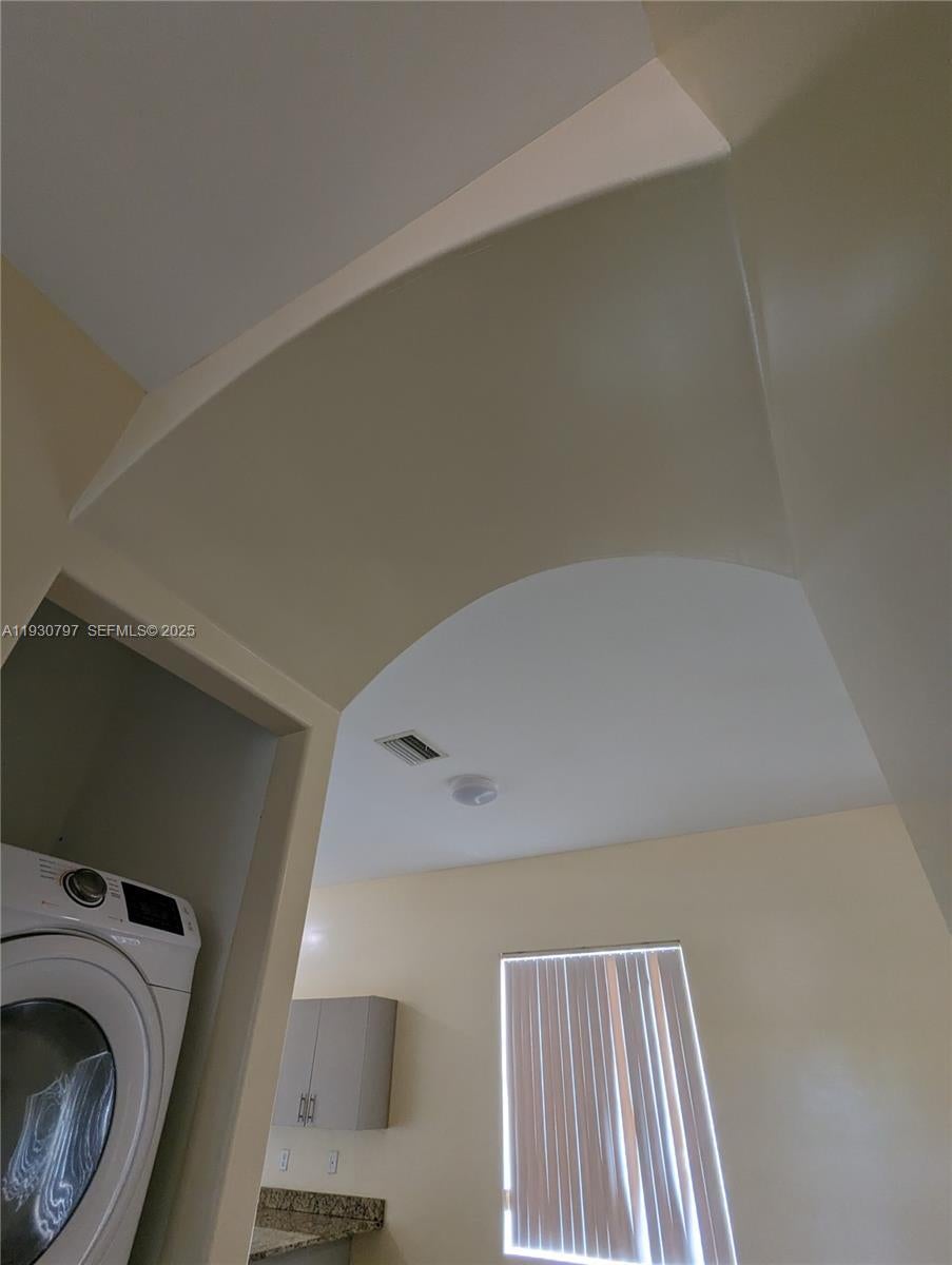 Amazing 3 Bed, 2 Bath Triplex Gem. New construction boasts airy open plan, granite countertops, New polished concrete floors, also includes very beautiful Italian Kitchen cabinets with new appliances. Freshly painted. Impact windows enhance security and treatment of them are in excellent condition, while lofty ceilings add grandeur. Super very convenient washer/dryer inside the unit. New A/C that is only two years old. Assigned parking space Nestled in family-focused locale with easy transit access. The location of the building is unbeatable, right next to restaurants, supermarkets, shopping center, hospital and much much more.