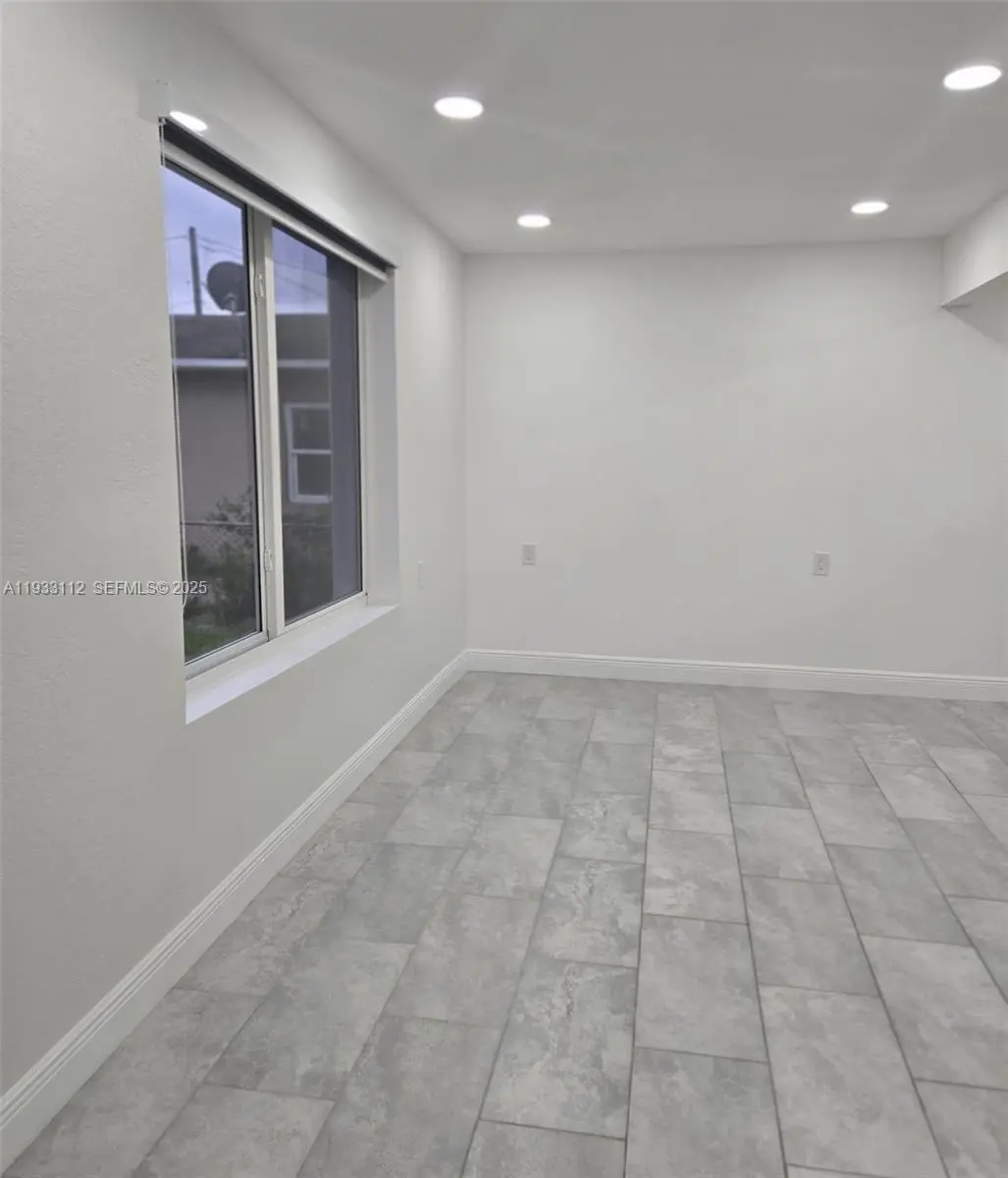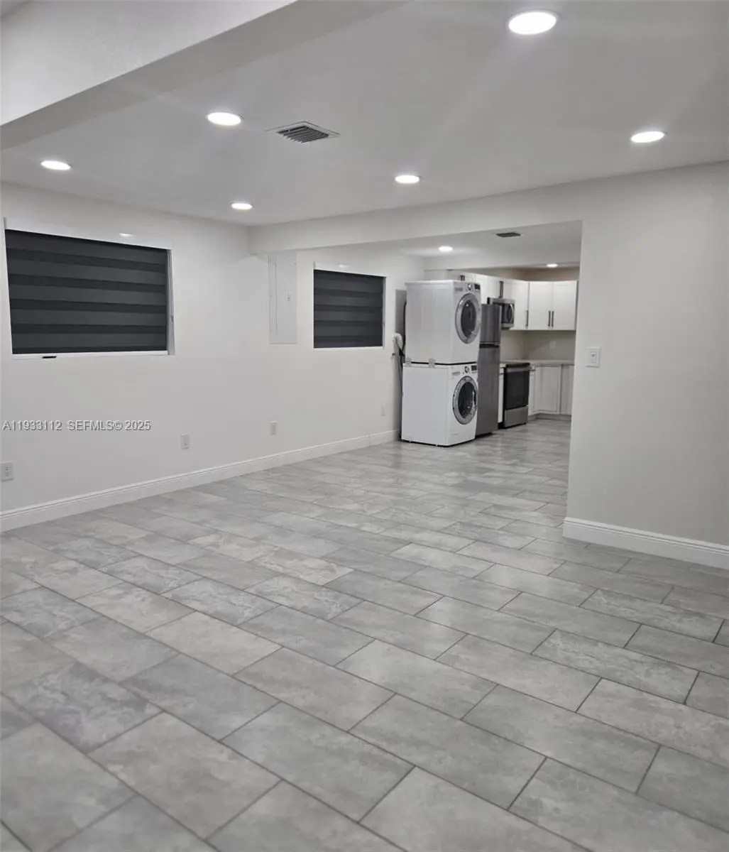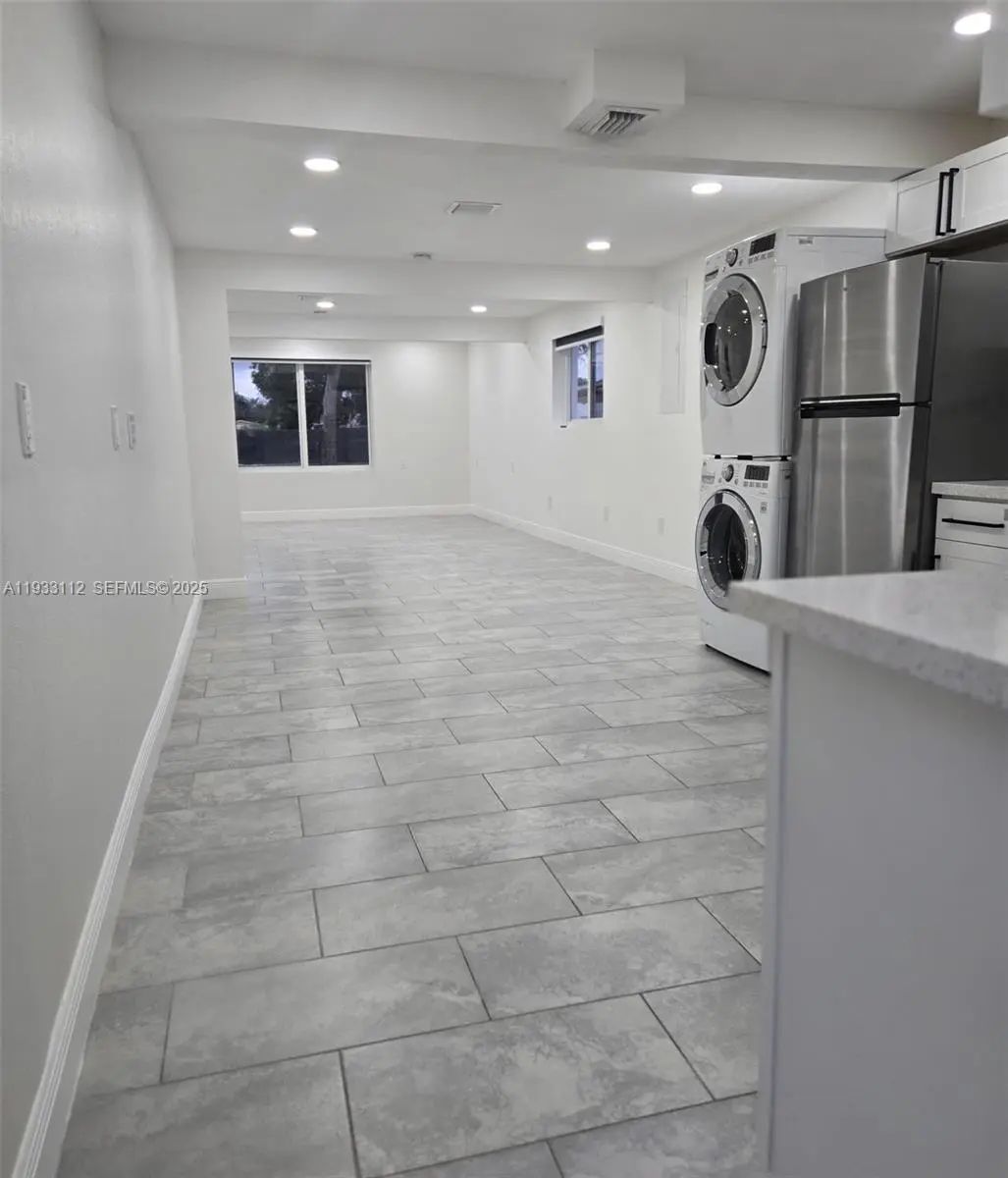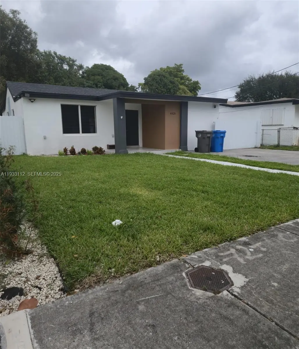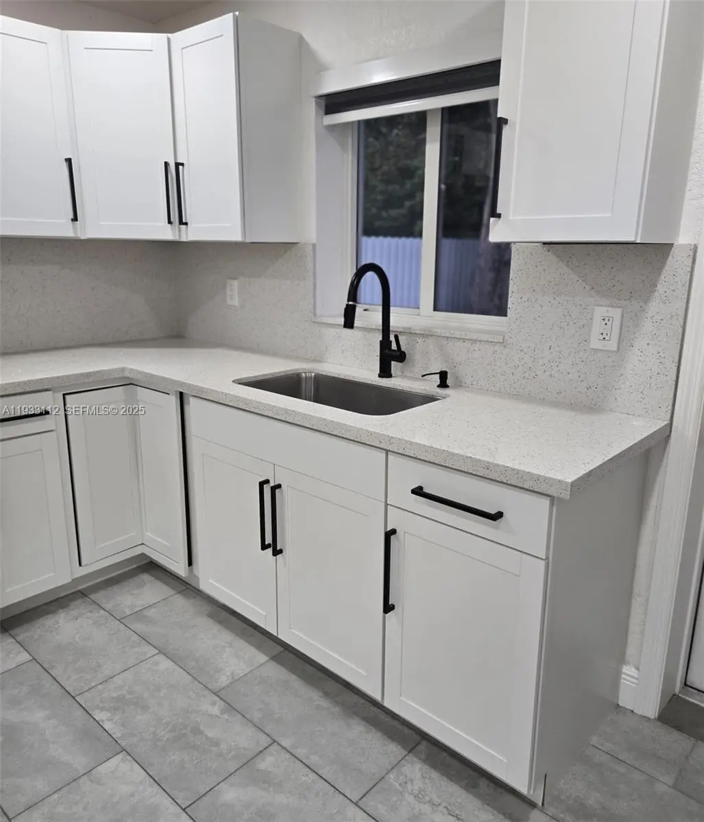 Move-in ready beautiful property! This fully remodeled 3-bedroom, 1-bathroom home features an L-shaped kitchen with quartz countertops, stainless steel appliances, and in-unit laundry. The home offers a beautiful bathroom with large-format tile and brushed nickel finishes. Matching tile floors throughout extend seamlessly to the front porch. The property includes a double asphalt driveway providing ample parking, as well as aluminum fencing throughout for added privacy and security.