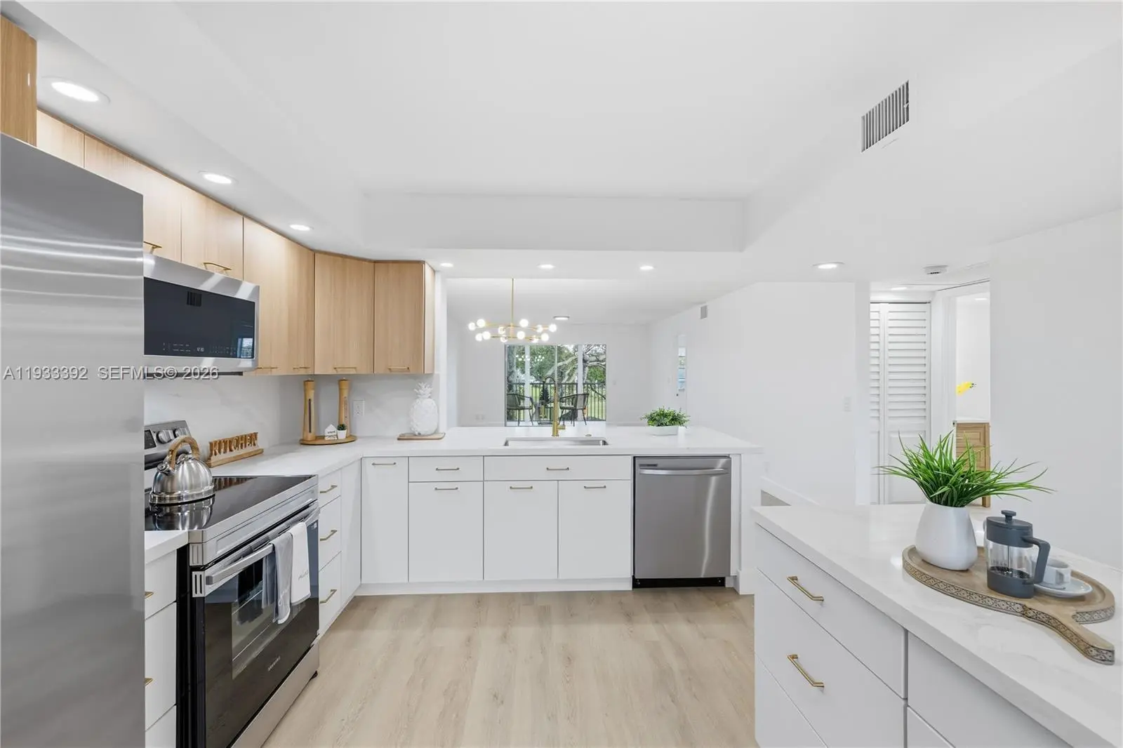 Welcome to this totally updated 2/2 unit with a lake view that greets you as you enter the front door, oasts a contemporary kitchen with sleek, ceiling-high cabinets, quartz countertops, and brand-new appliances. Enjoy the beauty of brand-new vinyl flooring, freshly painted interiors, and elegant, bathrooms. Breathtaking views. Enjoy the convenience of an in-unit washer and dryer. The HOA is $520/month plus CVP $280/month, and includes water, cable, internet, and access to endless amenities, including a million-dollar clubhouse. Located in Cambridge I at Century Village, one of Pembroke Pines most desirable 55+active adult communities, minutes from The Shops at Pembroke Gardens and major highways.