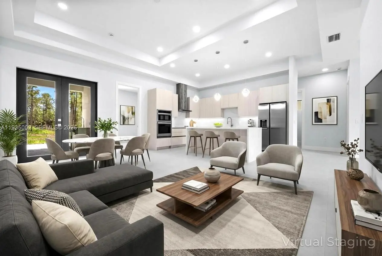 Welcome to your brand-new oasis, perfectly positioned in a highly desirable, fast-growing area right in the center of “the Estates.” READY TO MOVE IN. This stunning home sits on a 1.14-acre 100% upland lot, offering the perfect blend of security, comfort, and privacy—all built to the latest Florida construction codes for peace of mind. Step inside and enjoy nearly 1,800 sq.ft. of A/C living space and 2,950 sq ft under roof, with a bright, open layout designed for modern living. You’ll love the chef-inspired kitchen, quartz countertops, a beautiful waterfall island, soft-close custom cabinetry, and top-of-the-line stainless steel appliances. Each of the 4 bedrooms features built-in closets, including a Primary suite and 3 full bathrooms. The two-car garage comes with an elegant epoxy finish, while your whole home benefits from a premium reverse osmosis water filtration system. Luxury and practicality meet with designer bathrooms and Kitchen, pavered driveway and an over sized backyard—perfect for relaxing or hosting friends. There’s even room to add a guest house or a sparkling pool to boost your investment. No HOA and no pet restrictions mean total freedom. Enjoy a peaceful retreat surrounded by nature, just minutes from Ave Maria, Naples, award-winning schools, restaurants, and the beach. This is more than a house; it’s a lifestyle upgrade in a vibrant, up-and-coming community. Home warranty included—make this dream yours today