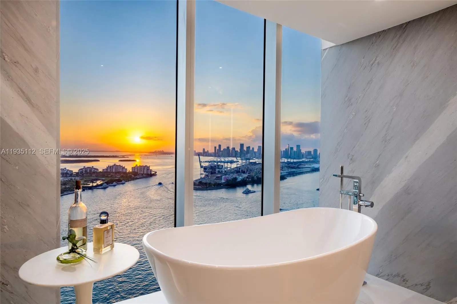 Experience Miami Beach luxury at this sophisticated, rarely available 01 line, featuring 3-bedroom, 3.5-bath condo which spans an impressive 3,365 square feet, offering breathtaking 360-degree views and a perfect blend of modern elegance and timeless design. The living space defines style and comfort. Flooded with natural light through floor-to-ceiling windows, the open layout is elevated by exquisite ceramic wood floors, while a reflective ceiling adds an unexpected touch of brilliance, amplifying light and additional views. The chef’s kitchen features exquisite natural stone countertops, top-of-the-line Wolf appliances, and a seamless flow into the dining and living areas, ideal for both entertaining and everyday living. The primary suite is a serene retreat, complete with a spa-inspired bathroom featuring a soaking tub, separate shower, and a custom walk-in closet. Step outside to your private terraces to soak in stunning sunsets, sunrises, and prime Miami Beach skyline views. Resort-style amenities include a beach club, pool, spa, gym, restaurant, tennis court, private elevator, and concierge service. With assigned parking, valet, doorman, and guest options, convenience is at your fingertips. This is more than just a home, it’s your personal slice of Miami Beach paradise.