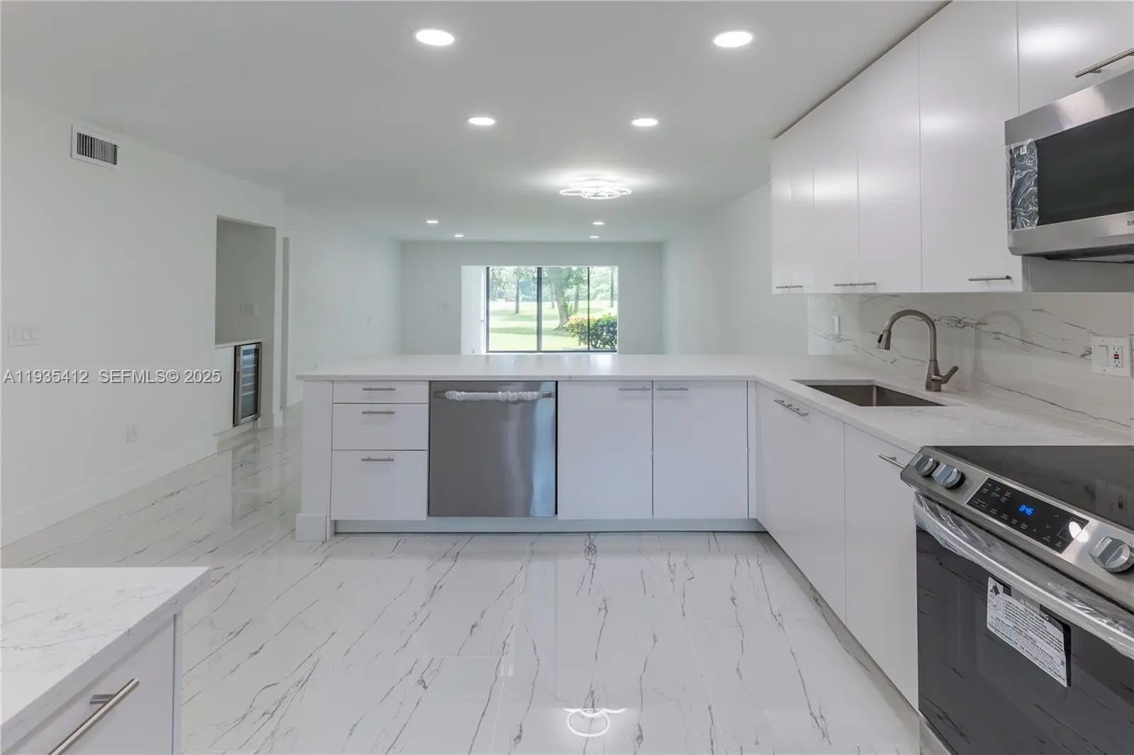 Stunning fully remodeled 2BR/2BA ground-floor residence in a desirable 55+ community. Enjoy the privacy and comfort of a private house-like setting with serene views of nature and the golf course. Renovated with no expense spared, featuring high-quality Italian porcelain flooring throughout, a brand-new kitchen with granite countertops and top-of-the-line appliances, modern LED lighting, beautifully updated bathrooms, new A/C, new water heater, and in-unit washer and dryer. Move-in ready and truly exceptional.