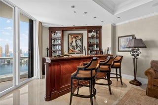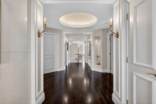 A rare home in the sky! This extraordinary Residence Du Cap Lower-Penthouse Tower Suite sits perfectly centered within the tower, offering a truly unique architectural presence with higher 10 ft. high ceilings & a thoughtful redesign that enhances light, scale, and flow. This expansive 4-bedroom, 4.5-bath residence plus family room features refined craftsmanship throughout, including Jerusalem stone marble & wood flooring, exceptional custom carpentry, a built-in bar, library, and elegant family room spaces. The chef’s German Becker Zeyko kitchen with Gaggenau SubZero appliances is appointed with granite countertops & full backsplash, full pantry while the independent laundry room includes separate interior storage—a rare and valuable convenience. Designer finishes by Renowned Designer elevate every detail, complemented by customized soffits & niches, built-in dining room server, china closet along with fully built-out wardrobe closet systems & bespoke millwork throughout. Enjoy breathtaking flow-through views spanning East to the Atlantic Ocean and West-Southwest to the Intracoastal, Maule Lake, and the Downtown Miami skyline—offering unforgettable sunrise and sunset vistas. Experience the renowned Williams Island lifestyle, featuring a full social calendar, 15 clay tennis courts, 4 pickleball courts, 2 padel courts, kayak station, world-class spa with indoor lap pool, hair salon, multiple dining venues, and exceptional resort-style amenities.