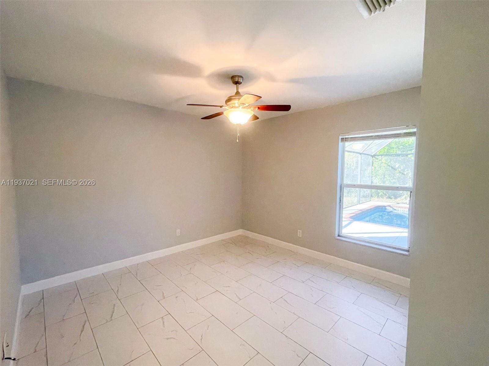 Beautiful 4Bd/2Ba + Den POOL HOME! On an OVERSIZE LOT!!! Welcome to your dream home in Cape Coral! This stunning home has been fully updated and features elegant 12 x 24 Porcelain Tiles throughout. The gorgeous kitchen offers Granite Countertops, a stylish tiled backsplash, new modern cabinetry, and stainless steel appliances, making it a chef's paradise. The den offers an ideal workspace for those who work from home or need a quiet area to study. Spacious master bedroom with walk-in closet. Amazing master bathroom with double sinks and granite countertops, for added convenience and luxury. Large jacuzzi tub and tiled shower. Spacious outdoor screened in lanai with large inground POOL. Enjoy Florida living in your very own perfect oasis for relaxation and entertainment. Situated on an oversized lot offering extra privacy and plenty of outdoor space for gardening, playing, or hosting gatherings. Conveniently located close to shopping, dining, and more! Don't miss out on the opportunity to make this your forever home and enjoy the ultimate in outdoor entertaining and relaxation.