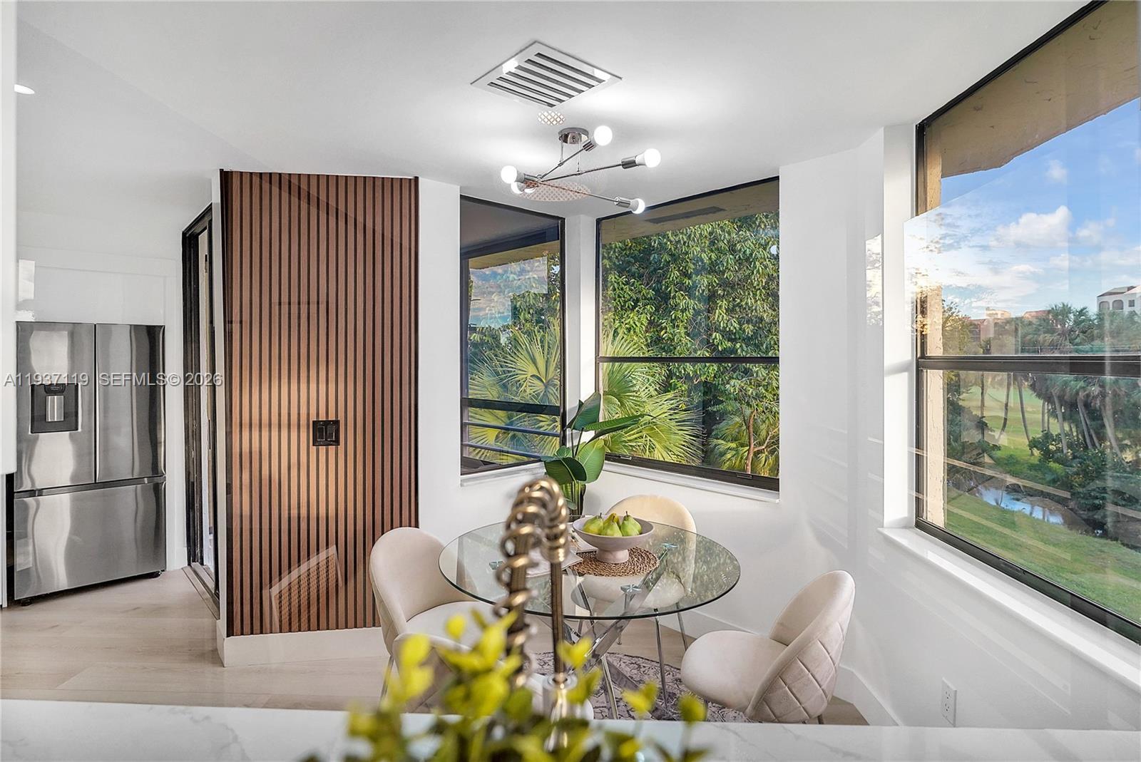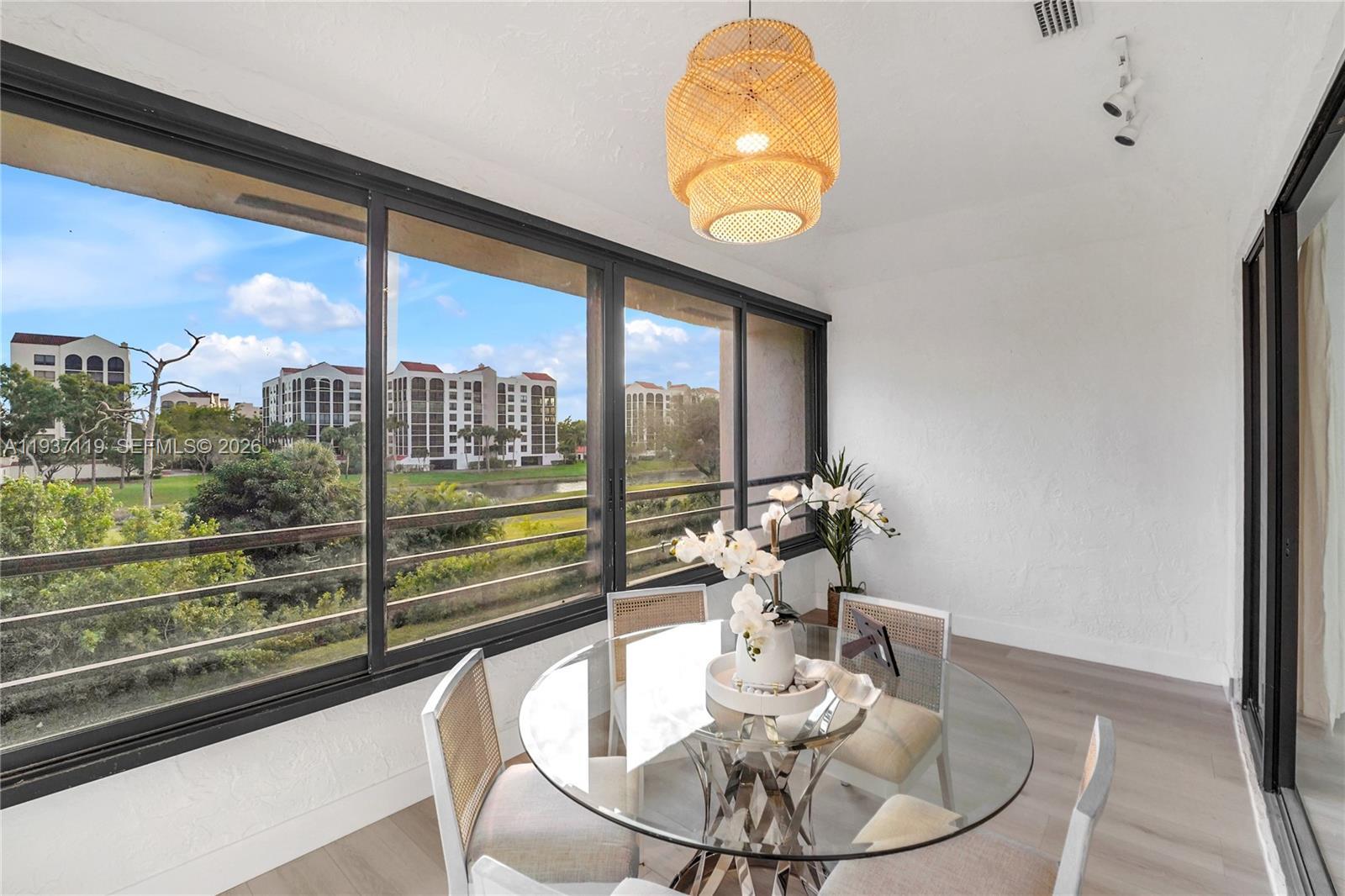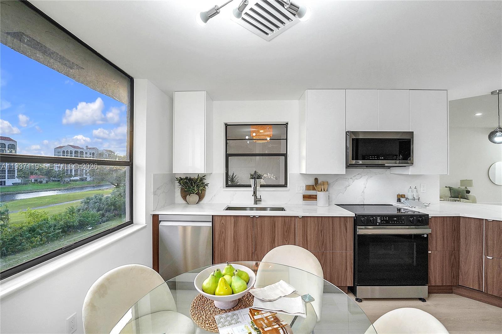 Stunning, beautifully renovated top-floor condo with sought-after southern exposure and unobstructed water and golf course views. Located in prestigious Boca Pointe, this residence offers country club living with no mandatory membership. This light-filled home features 1,636 sq. ft. of living space with soaring 10-foot ceilings. The brand-new open kitchen showcases quartz countertops, modern cabinetry, and new stainless-steel appliances, ideal for both everyday living and entertaining. Enjoy fully updated bathrooms and new flooring throughout, creating a fresh, contemporary feel. Residents enjoy superb amenities including tennis courts, two swimming pools, and a relaxing jacuzzi. This exceptional home is truly a must-see—schedule your showing today!