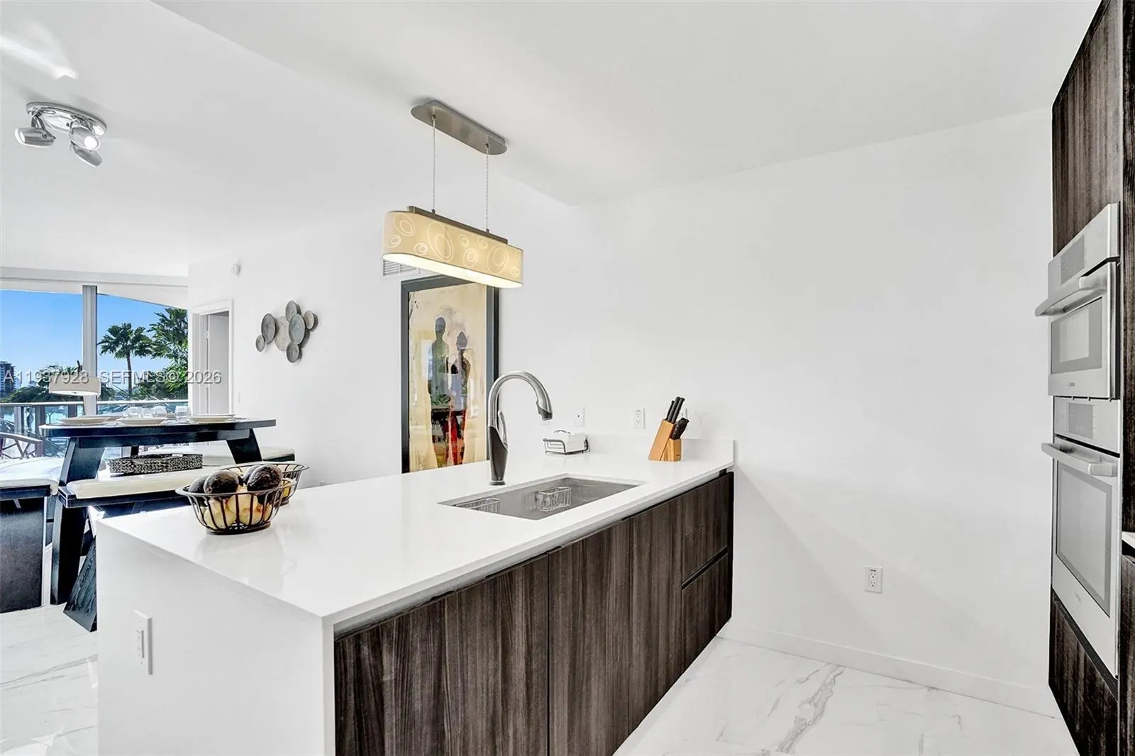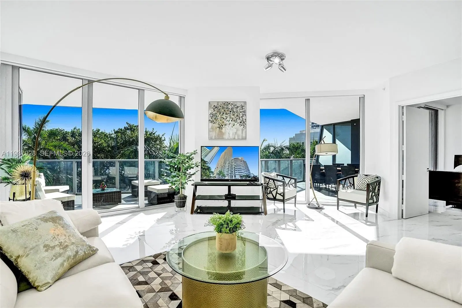 Aria on the Bay Unique direct bay-facing convertible 3 bedroom 3.5 bath in line best line 08 Beautifully and Brand new Furnished Calacatta porcelain flooring, white kitchen cabinets, Quartz counters and stainless steel appliances, a standalone Roman bath tub in master bathroom, an oversized deep balcony patio with views of lush tropical landscape and Biscayne Bay. This luxury waterfront building in front of the Margaret Pace Park has five-star resort amenities, which include sunrise and sunset heated pools, hot tub overlooking Biscayne Bay, BBQ, spa, sauna, steam room, resident's lounge with a private party room, business center, fitness center, yoga and pilates studio, movie theater, kids playroom, on-site cafe & bakery, and more