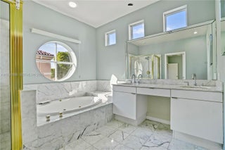 Best-priced single-family home in Island Way, a private gated community in Aventura. This elegant two-story 3-bedroom, 3.5-bath residence features high ceilings, and abundant natural light throughout. The entrance opens to an expansive open-concept living area. The living room flows seamlessly into the formal dining area, while the kitchen connects to a generous breakfast and media room, ideal for both everyday living and entertaining. The outdoor space offers a private patio with pool, and a bbq area. The primary suite features a walk-in closets, dedicated office space, and a spa-style bathroom with shower, jacuzzi, and double vanity. Additional features include a convenient laundry area and a two-car garage with automatic doors.