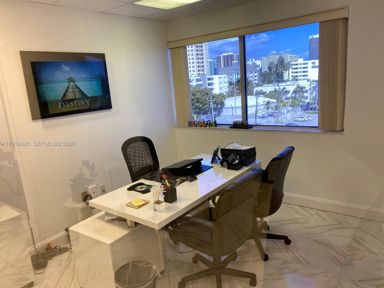 Stylish professional office with elegant accents in a Class A building in Bay Harbor Islands. Just blocks to Collins Avenue, Bal Harbor Shops and banks along the 96th street thoroughfare. Safe, elegant, and secure. Professionally managed, free guest parking and assigned tenant parking available in rear. 24/7 building and garage access. One reception area, two conference rooms, two storage closets,one kitchen area, and restrooms on the fifth floor. Schlage keypad entry at front door. Available immediately!
