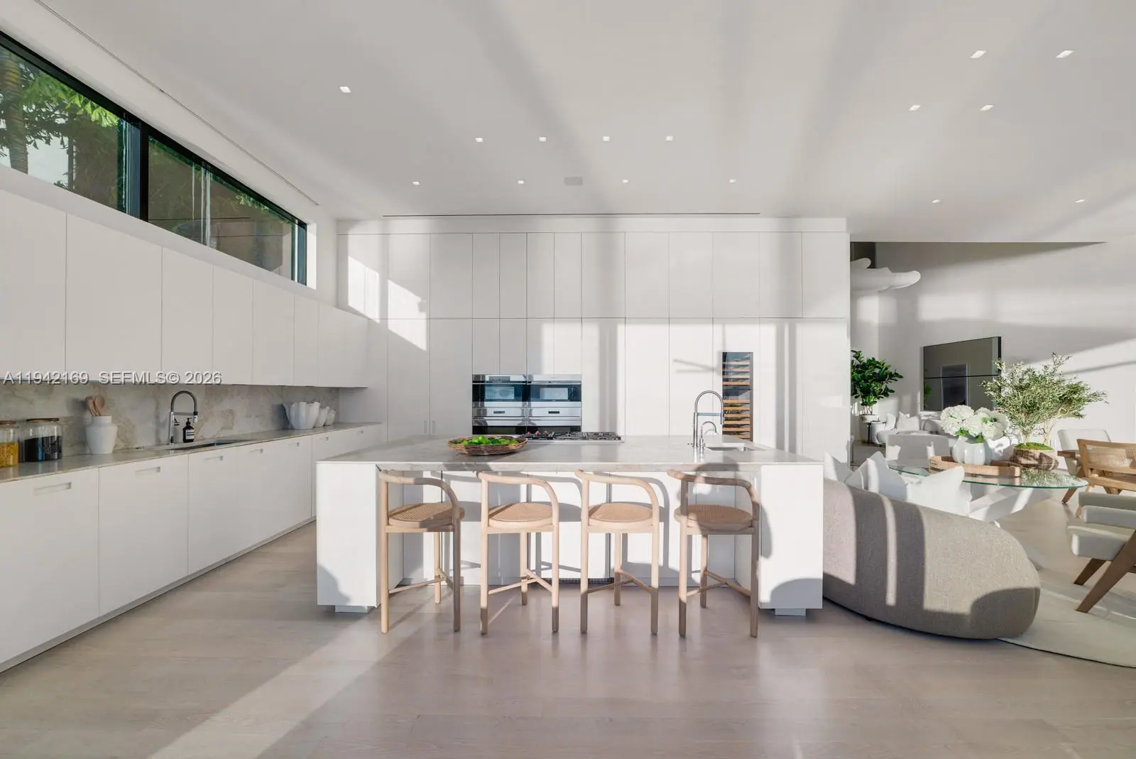 Step Inside With Me! This Modern Neo-Classical inspired estate embodies refined style and enduring sophistication on the Venetian Islands. Masterfully designed by CLF Architects and built by Brodson Construction, it was custom-built (not spec) with premium finishes and superior construction. Its iconic entry, crowned by soaring 25’ ceilings, reveals sunrise-facing interiors. Spanning over 10,000 sf per tax records, the home opens with a receiving room leading to a 64' grand social salon with formal dining and bayfront breakfast lounge. The culinary experience is anchored by an expansive eat-in island, Taj Mahal counters, gas cooktop, Wolf appliances, and views stretching toward the open waters. The stately primary wing impresses with a gallery-style entry hall leading to waterfront sleeping quarters, an intimate sitting lounge, 2 dressing rooms, and dual spa-like baths with soaking tub. An idyllic floor plan unfolds across 6 bedrooms, a media room, private office, fitness room, versatile staff quarters, and multiple sitting lounges, completing the home’s thoughtfully composed interiors. The outdoor experience is realized through lounging areas, a loggia with retractable screens, an outdoor TV, summer kitchen, covered dining, and sundeck with 42' pool. A private dock offers waterside seating along 105+ ft of Eastern Biscayne Bay breezes and a rooftop terrace provides additional hosting space with sunset views. A privacy gate, 2-car garage and generator complete this offering.