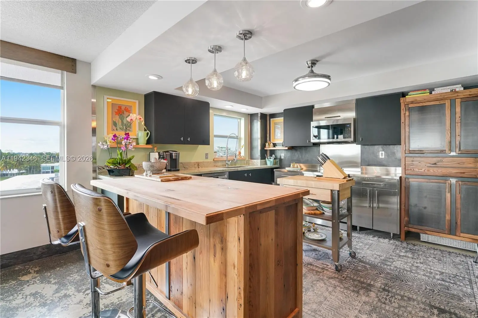 Beautifully renovated 2-bedroom, 2-bathroom penthouse corner residence offering sweeping views of the Indian Creek Golf Course, Intracoastal Waterway, and the Miami skyline. This bright and airy unit features an excellent split floor plan with sleek concrete floors throughout, enhancing its modern, clean aesthetic. The residence has been thoughtfully upgraded with a custom kitchen, custom closet cabinetry, and stainless steel appliances, and benefits from abundant natural light thanks to its corner exposure. Additional features include laundry inside the unit and hurricane impact doors and windows, providing both convenience and peace of mind. The building is exceptionally well maintained and has completed extensive recent renovations, including a new roof, seawall, boat dock, balcony railings, common area A/C, exterior painting, and more, all finalized as part of the 50-year recertification. Ideally located within walking distance to the beach, Bal Harbour Shops, neighborhood shopping, and dining options. The property is situated within the highly desirable A-rated Ruth K. Broad K-8 school district, with the community center and library just steps away.