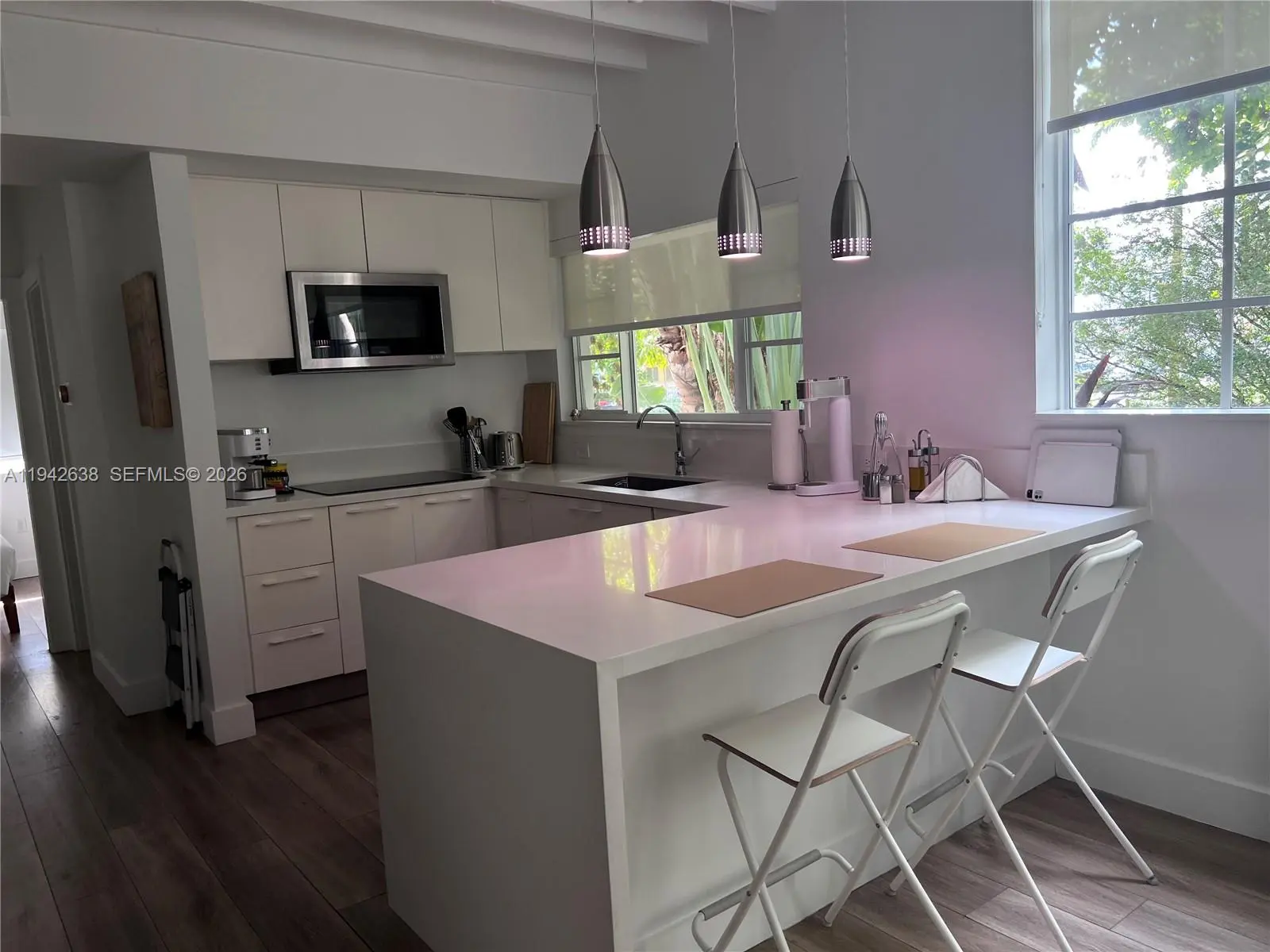 Beautiful apartment nestled in the amazing Meridian ave among beautiful greenery. This apartment can be rented with or without furniture. This is a must see, quiet building only 8 units. Feels like you are not on the beach, but yet so close to it.