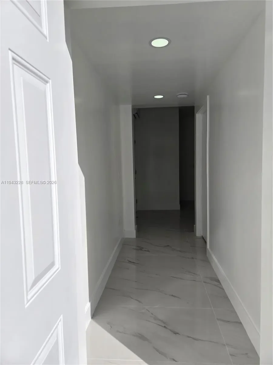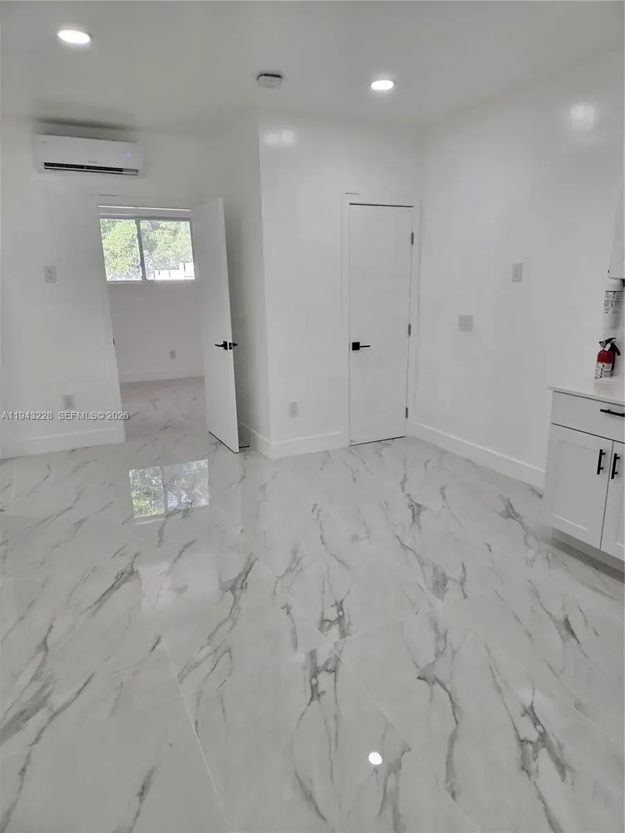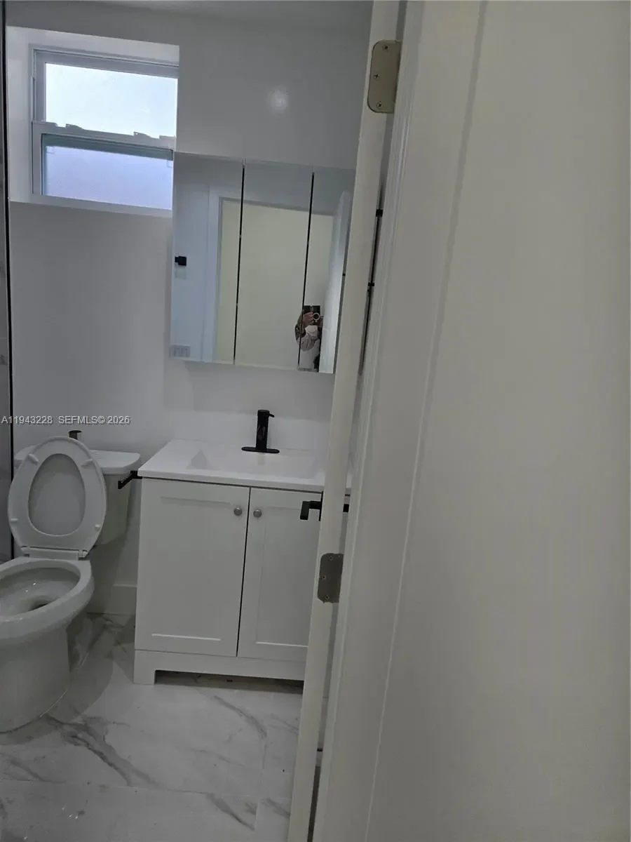 Fully renovated and never previously occupied since completion, this modern and private rear residence offers 2 bedrooms, each with its own full bathroom, plus an additional half guest bathroom, arranged in a flexible, contemporary layout. The primary bedroom includes a walk-in closet and additional closet space. The second bedroom also includes a closet and full bathroom and may serve as a bedroom or multi-purpose room depending on tenant needs. The residence features an open kitchen with eat-in area, in-unit washer and dryer, impact windows and doors, recessed lighting, porcelain tile flooring, and efficient tankless water heating. Please note the layout prioritizes private rooms and functional space rather than a traditional separate living room.