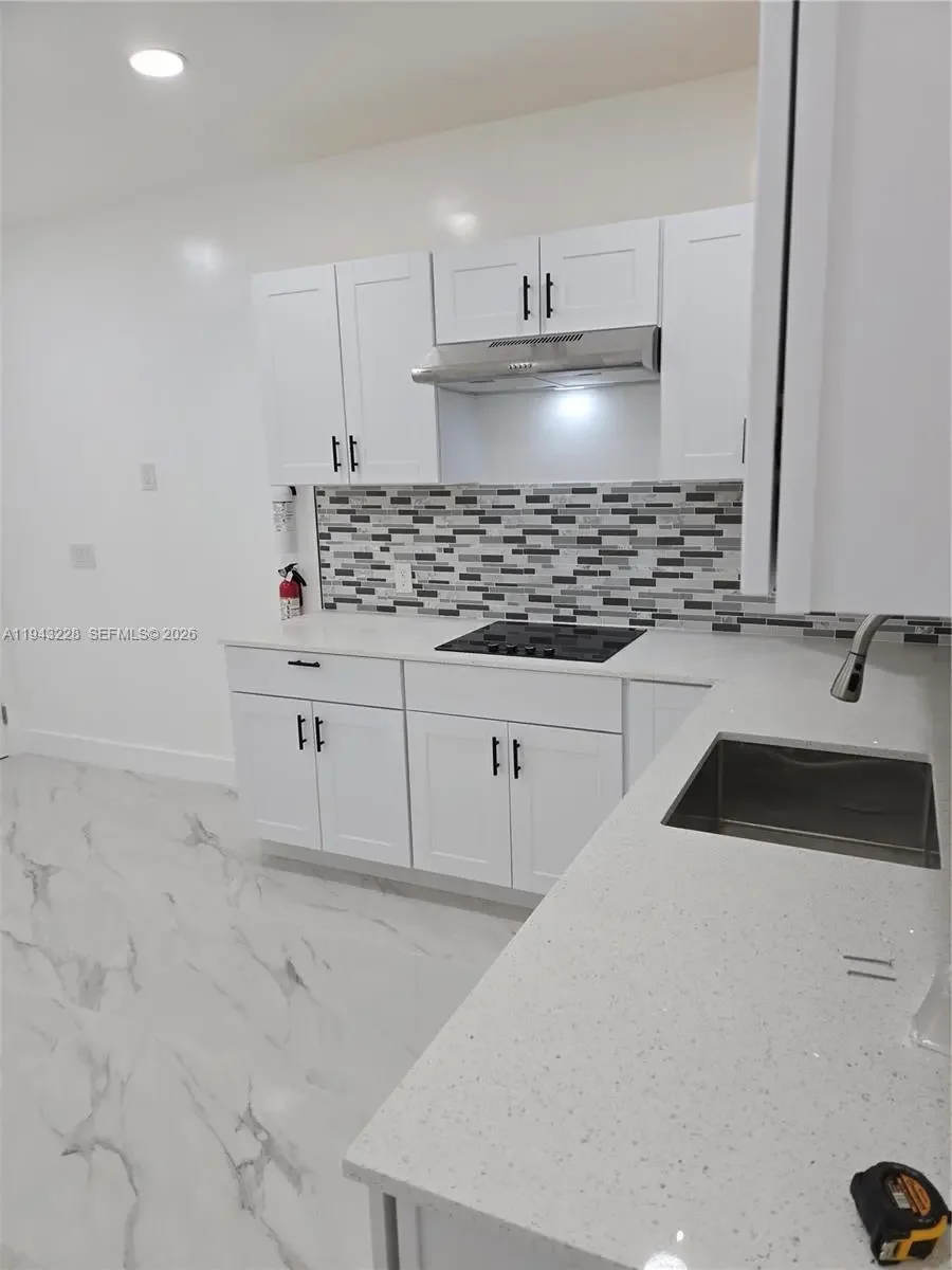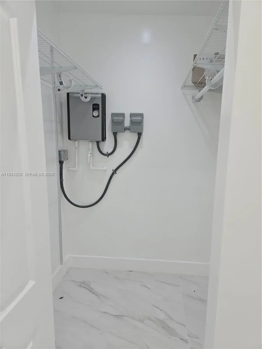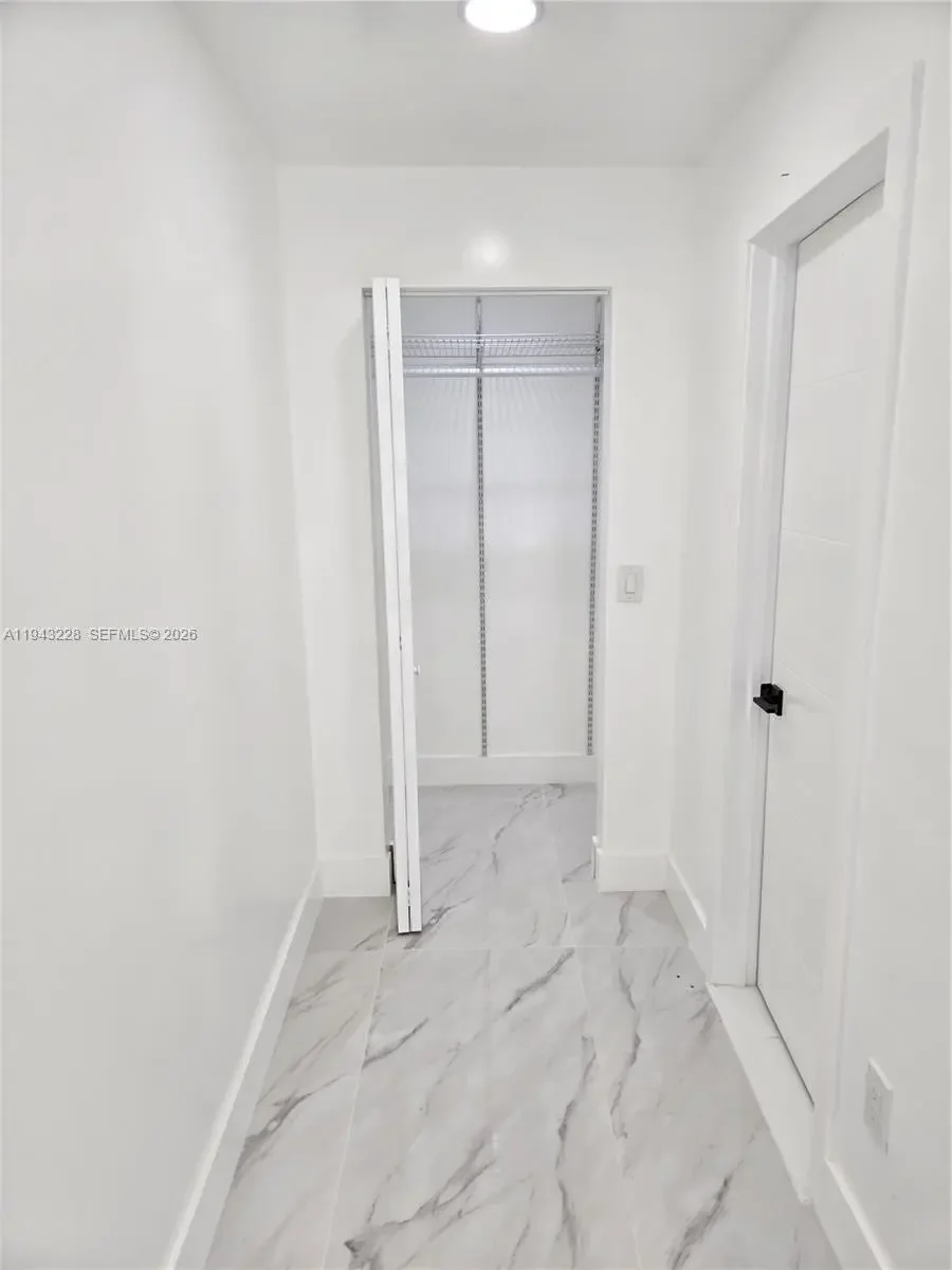 Fully renovated and never previously occupied since completion, this modern and private rear residence offers 2 bedrooms, each with its own full bathroom, plus an additional half guest bathroom, arranged in a flexible, contemporary layout. The primary bedroom includes a walk-in closet and additional closet space. The second bedroom also includes a closet and full bathroom and may serve as a bedroom or multi-purpose room depending on tenant needs. The residence features an open kitchen with eat-in area, in-unit washer and dryer, impact windows and doors, recessed lighting, porcelain tile flooring, and efficient tankless water heating. Please note the layout prioritizes private rooms and functional space rather than a traditional separate living room.
