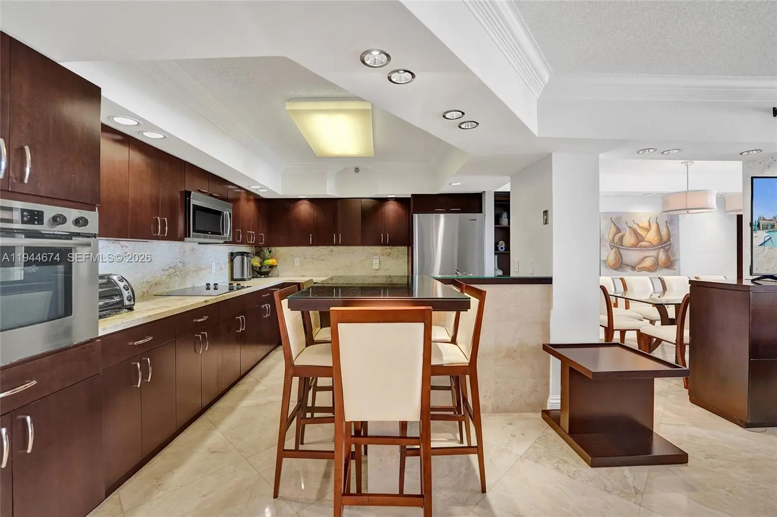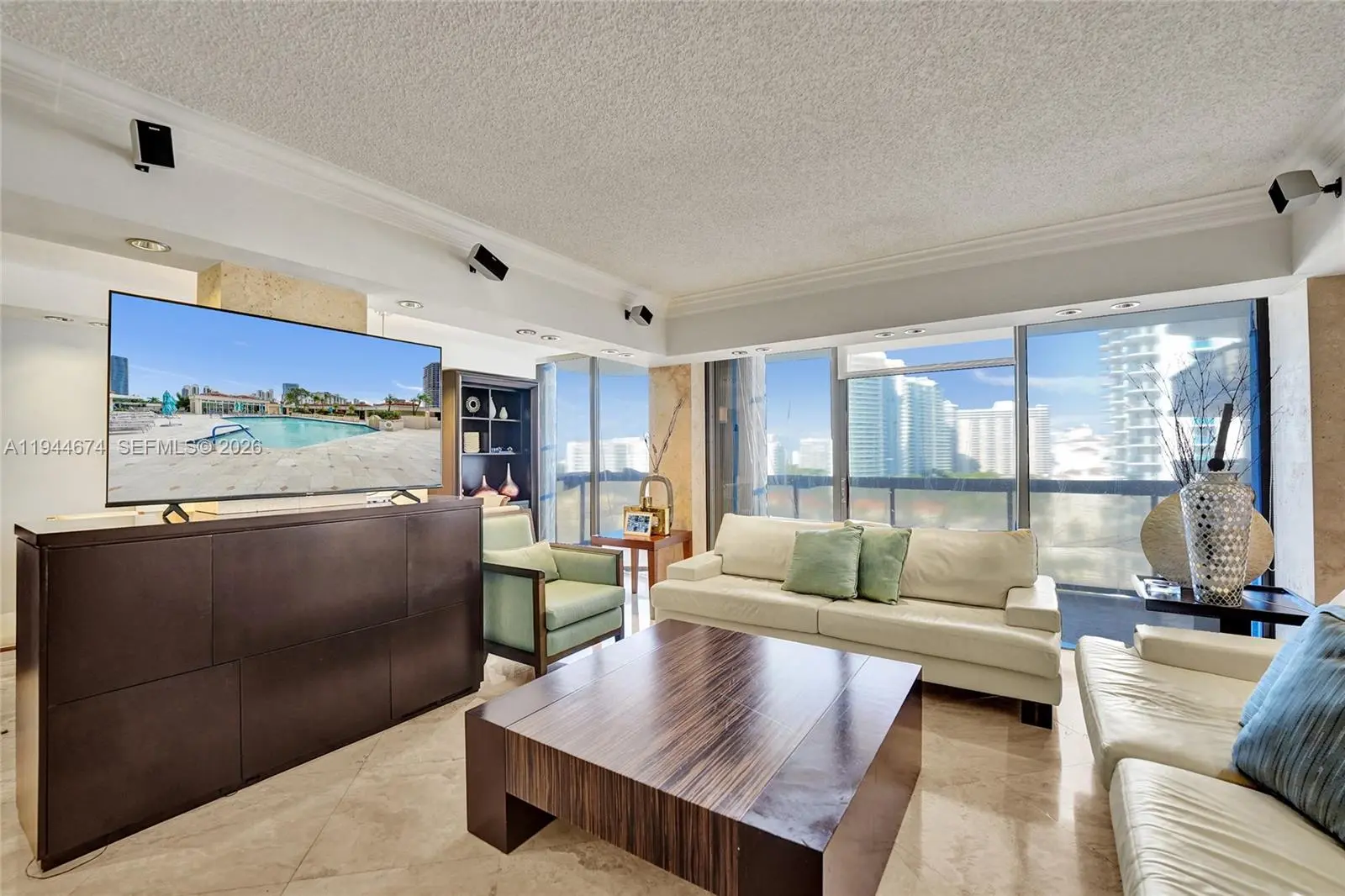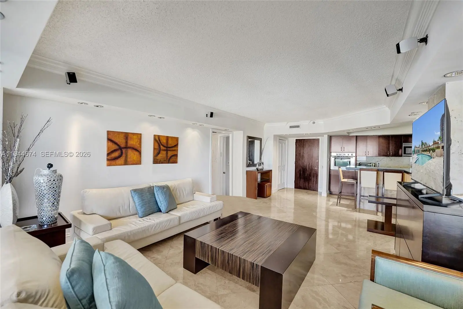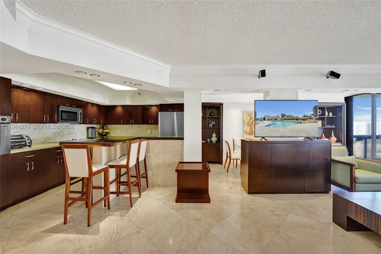 Bright and beautifully updated residence in the prestigious Turnberry Isle South, offering space, light, and flexibility. Formal dining room featuring stone walls and built in cabinetry. Renovated marble bathrooms, custom-built closets, and integrated lighting throughout. Modern open kitchen with Bosch and KitchenAid appliances, ideal for everyday living. 2 Bedrooms plus a Den easily used as a third bedroom, office, or guest space. A rare opportunity in Aventura, priced to move in today’s market.