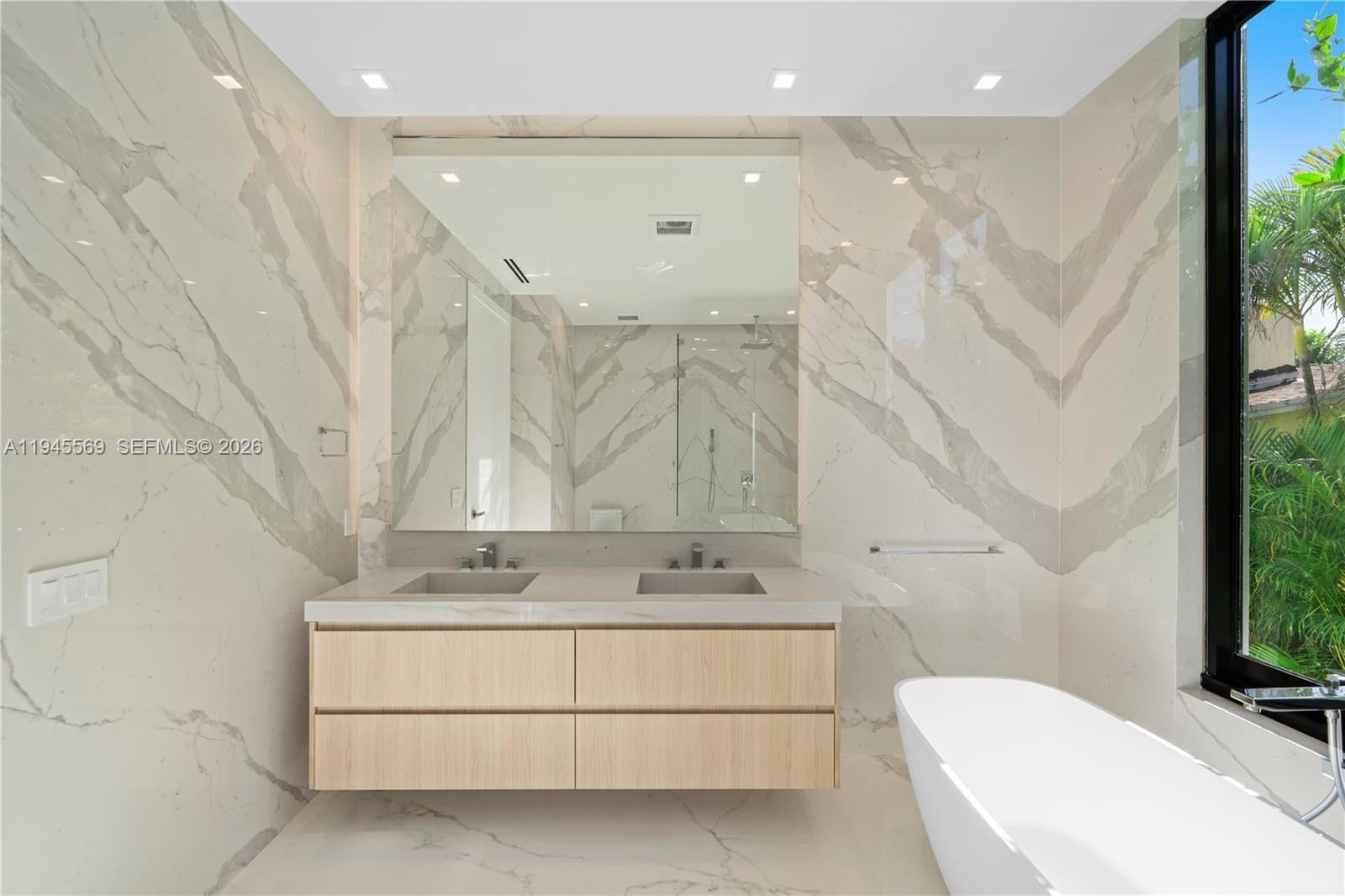 BRAND NEW TROPICAL MODERN ONE-STORY HOME NESTLED IN LUSH LANDSCAPING IN BISCAYNE PARK! 10,850 SF LOT and 3,896 Total SF Residence. 4 Bedrooms ,4.5 Bathrooms + Cabana Bath. Grand Salon with 15 FT Ceilings. Living & Dining Areas with Custom TV Lounge. European Oak wood flooring throughout. Chef's Kitchen with Taj Mahal stone island + Wolf & Sub-Zero Appliances. Primary Suite with Large Walk-in Closet. Primary Bathroom wrapped in book matched porcelain with double vanity sink & bath tub. Expansive Outdoor Area with Heated 40’ Lap Pool surrounded by tropical greenery. Car Garage + Parking for 4+ Cars. Located in the Safest Neighborhood Biscayne Park with 24HR Security Patrol. Near Prestigious Miami Country Day School.