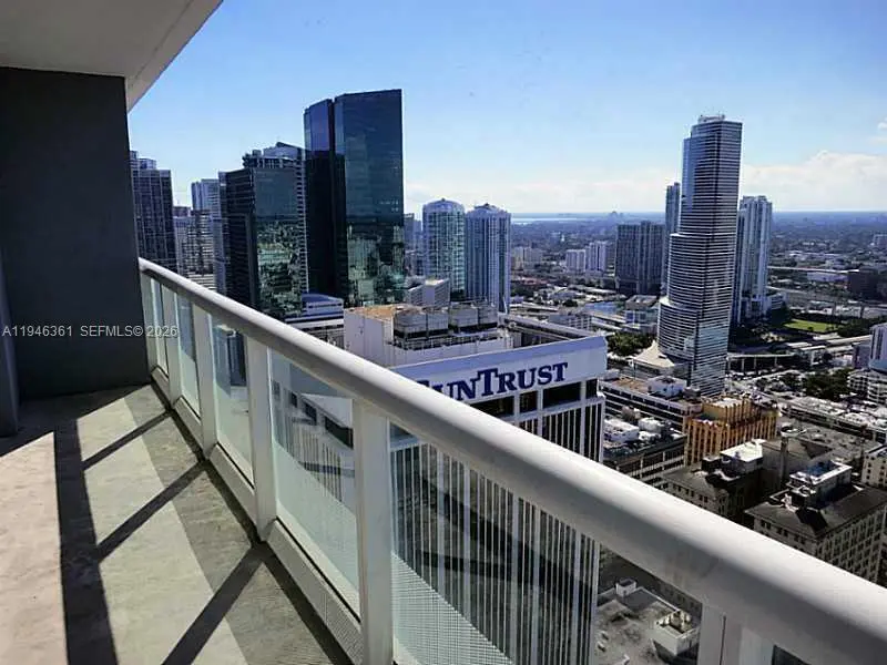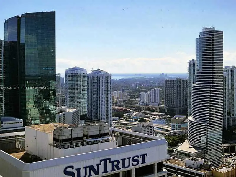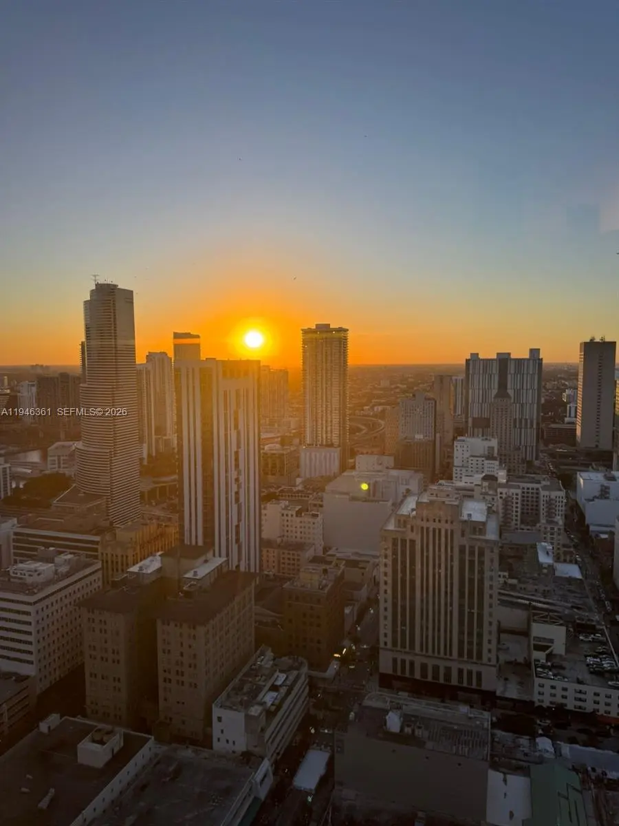 Elevate your lifestyle in this spacious studio residence on the 45th floor of the iconic 50 Biscayne tower. This unit features a functional open layout with laminate floors and floor-to-ceiling glass sliding doors that open to a private balcony, offering sweeping city views. The European-style kitchen is appointed with Dellacasa Italian teak cabinetry, absolute black granite countertops, and stainless steel appliances. Residents enjoy resort-style amenities including a spectacular 10th-floor "Skylobby" with an infinity-edge pool, lush landscaping, and private cabanas. The building also offers a two-level clubroom with billiards and a state-of-the-art fitness center & spa on the 12th floor with breathtaking bay views. Prime Downtown location directly across from Bayfront Park. Steps from the Kaseya Center, Bayside Marketplace, Whole Foods, and the Metromover. Includes 1 assigned parking space. No pets. 1-year lease required.