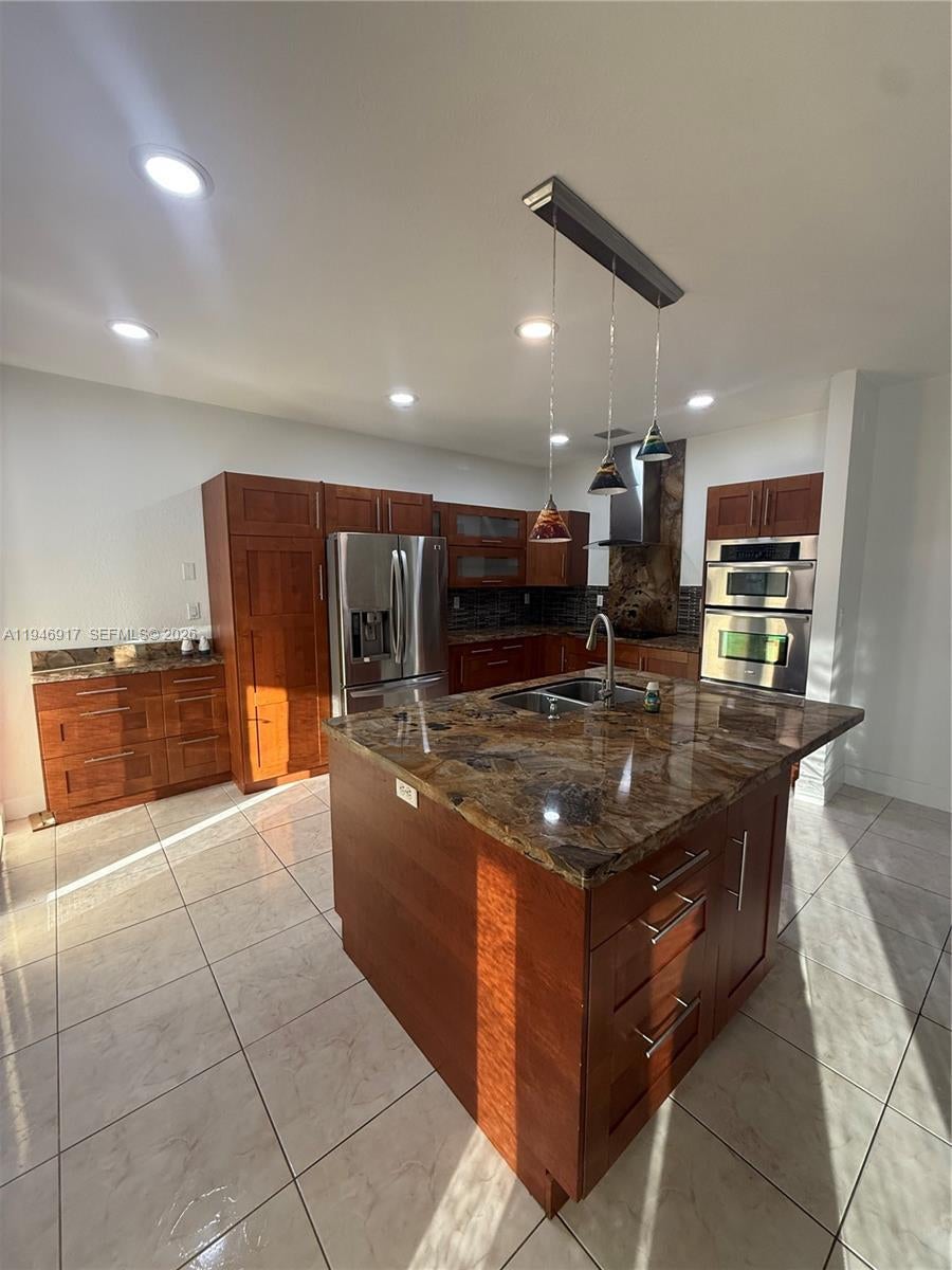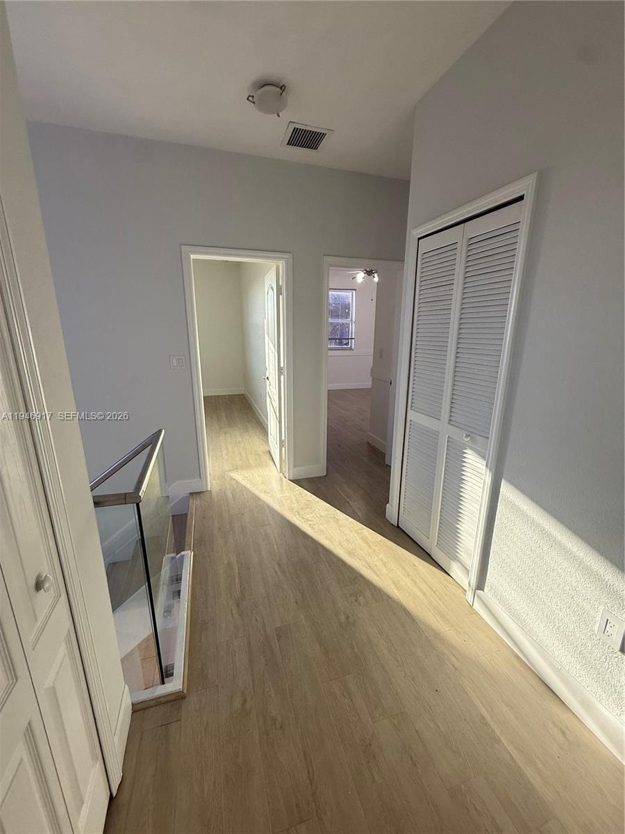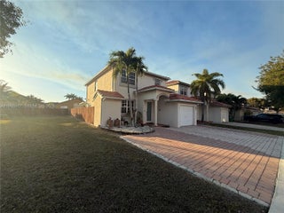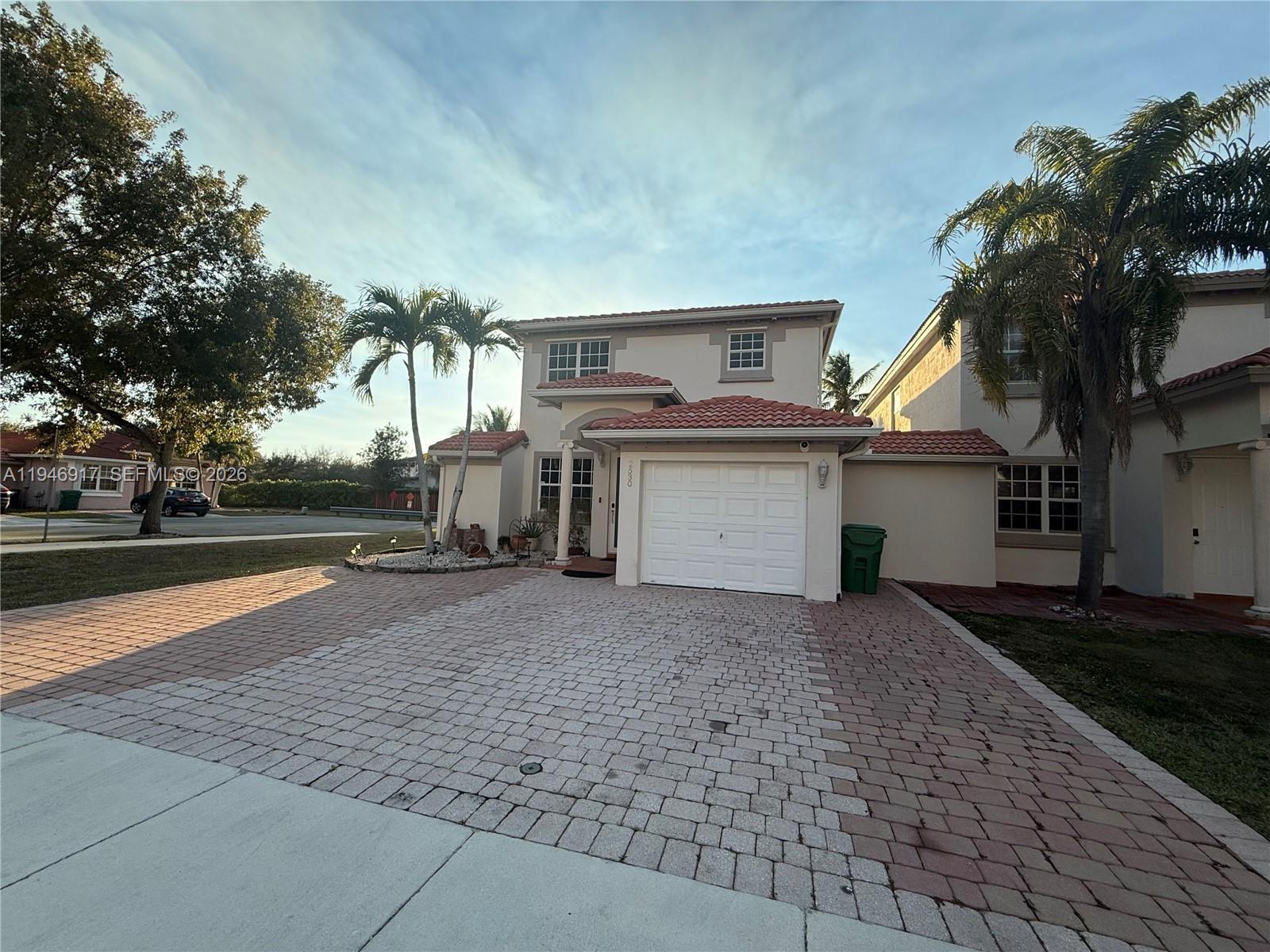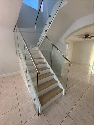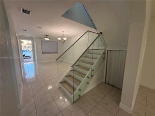 Beautiful 4 bedrooms and 3 bathrooms corner home with an extra lot (4561 sqft) where you can enjoy the beautiful pool which was just resurfaced. One bedroom one bath on first floor. Beautiful patio terrace to enjoy a glass of wine or a cup of coffee. Surround system throughout the house to enjoy your favorite music or move just as in the theater. 8 wired security cameras to cover all outside areas and alarm systems inside. All impact doors and windows. Garage for 1 car and driveway for 3. Clear glass stair railway, new laminated waterproof flooring on the 2nd floor. Both upstairs bathrooms were remodeled, and the kitchen was redone with a built-in wall microwave and oven granite countertops and stainless-steel appliances. Fast approval