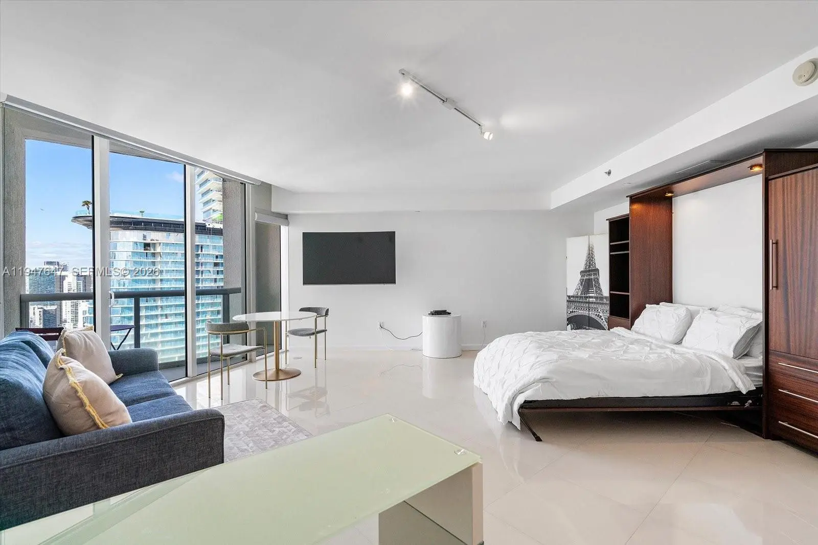 Furnished penthouse studio in Icon Brickell with amazing city, river and bay views. Super clean condo that feels like brand new. Built in murphy bed with strorage, stainless appliances, new full size w/d, new furniture, turn key. 5 star Amenities, spa, theatre, restaurants and incredible pool.