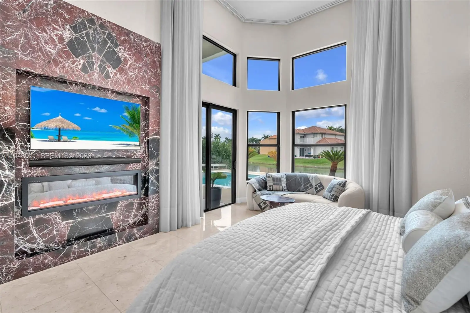 ***Luxurious Modern Waterfront Residence in Prestigious Gated Windsor Palms*** Experience elevated South Florida living in this fully renovated 5BR/4BA modern masterpiece. Offering 3,285 sq ft of refined living space on a 7,812 sq ft lot, this residence showcases high-end upgrades throughout and is located in one of Miramar’s most exclusive gated communities. Designed for a true resort-style lifestyle, the home features soaring ceilings, abundant natural light, impact-resistant windows, and elegant marble flooring. The open-concept layout is perfect for entertaining, highlighted by a striking glass staircase, Italian marble fireplace, and custom luxury TV wall units. The gourmet chef’s kitchen boasts premium finishes, high-end appliances, and exceptional craftsmanship. The main-level en-suite master bedroom serves as a private retreat with a wood-slat feature wall, floor-to-ceiling curtains, and a breathtaking spa-inspired bath. Step outside to a stunning backyard oasis featuring a 12x20 resort-style pool, spa, glass fence for unobstructed lake views, a serene sand-beach-style yard, a sunset sitting area, and a High-end outdoor grilling/bar lounge designed for unforgettable gatherings. This exceptional home delivers unmatched luxury, comfort, and style—offering a true everyday getaway within the security of a gated community. A must-see for buyers seeking a truly extraordinary property!
