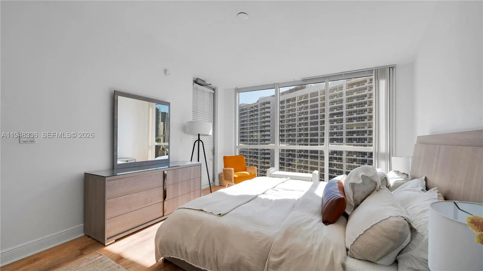 Beautifully furnished unit at Opera Tower with a mid-century modern natural design! This is a spacious high-floor unit in the heart of Edgewater, featuring incredible water views and lots of natural light! Located directly across from Margaret Pace Park, with easy access to Biscayne Bay, Downtown, Wynwood, and Midtown. Ideal for tenants seeking a prime waterfront location, vibrant neighborhood lifestyle, and stunning city-to-bay views. Building Amenities: Pool, BBQ (Under renovation until March 2026), Fitness Center, Sauna, 24hr concierge & Valet Parking, Business Center, Clubroom. Farmers Market on Sundays at Margaret Pace Park! (right across the street)