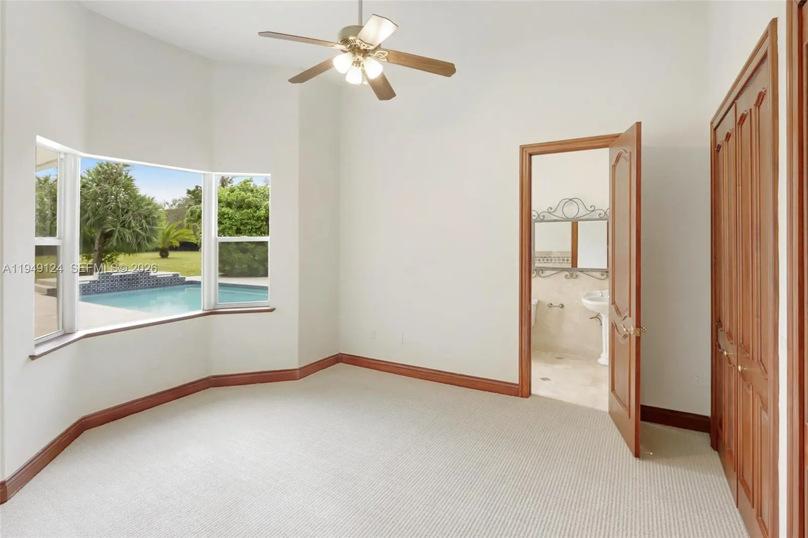 Step into a world of refined comfort - soaring 14-foot ceilings, 8-foot doors, expansive spaces in an atmosphere of effortless luxury. The grand foyer unfolds into a tranquil formal living room, reflecting the home’s elegant design. Thoughtfully designed split floor plan offers a chef’s kitchen with a center work island. Perfect family room—complete with a built-in bar & wine cooler. With 7 bedrooms, one ideal for a private office. The primary suite is a serene retreat, with a spa inspired bathroom & dual walk-in closets. Gracious covered patio overlooking a sparkling pool & vast backyard. Highlights - central vacuum, smart Nest and WiFi, & a spacious 3-car side entry garage. This residence blends sophistication, comfort, and modern convenience, welcoming you home the moment you arrive.