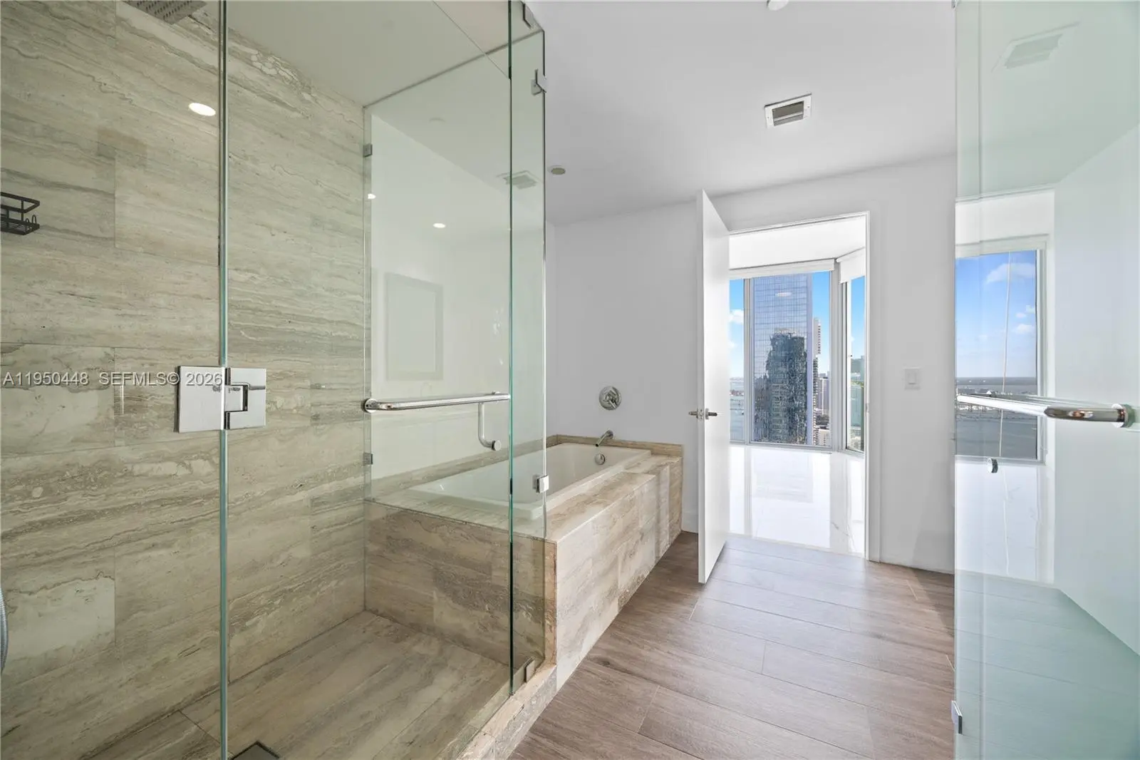Corner Unit with Endless Views! Spacious 1BD + den, 2BA on the 40th floor with stunning views of Biscayne Bay and Miami skyline. Features private elevator and foyer, marble floors, anti-slip marble balcony, custom closets, blackout drapes in bedroom, and sheer vanilla curtains in living room. Floor-to-ceiling 10’ windows bring in natural light. High-end Miele appliances, washer/dryer, and premium finishes. Large balcony accessible from living and bedroom. Enjoy top amenities: beach club, 2 pools, man-made beach, tennis, volleyball, gym, spa, dog park, business center, and more!