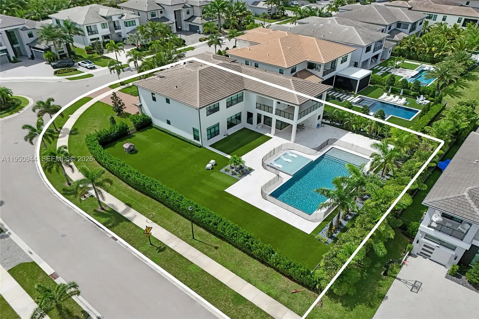 17385 Ponte Chiasso Drive is located in one of the most desired neighborhoods in Boca Raton offering state of the art clubhouse, tennis courts, pickleball courts, playground, resort style pool, lap pool, splash pad, indoor/ outdoor restaurant, gym, indoor & outdoor basketball courts, walking trails and more. Built in 2022, this custom built estate offers over 6000 sq ft of unparalleled living space located on an exceptional 0.47 acre corner lot including 5 bedrooms, 7.5 bathrooms, Media room/ optional 6th bedroom, club room/ optional 7th bedroom, loft and 4 car garage. The homesite features fully custom interior upgrades, including a thoughtfully laid out custom kitchen designed with high end appliances, double waterfall islands, Taj mahal custom stove hood, millwork, custom cabinetry throughout, custom finished closets, epoxy finished garages, resort style custom salt water pool and fully turfed backyard with privacy from all sides. All bathrooms, plumbing and mirrors inside the home have also been custom finished. No detail was spared when designing this home. Additional details of upgrades available upon request.
