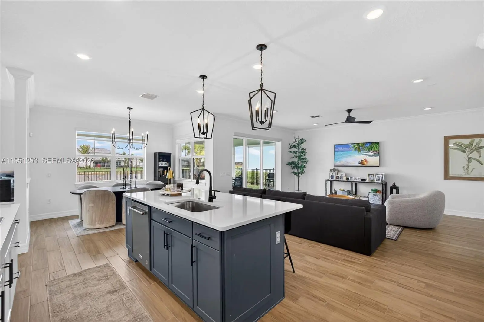 Welcome to this 2024 new construction Riverwalk model, one of the most desirable floor plans in the gated, family-friendly community of Avondale in Avenir. This move-in-ready home features over $130,000 in builder upgrades plus additional custom improvements. The open-concept design is ideal for family living and entertaining, featuring a built-in kitchen with quartz countertops, large island, upgraded cabinetry, custom backsplash, under-cabinet lighting, and built-in stainless appliances. Pocket sliding glass doors open to an extended covered lanai, creating seamless indoor-outdoor living. The spacious owner's suite includes an expanded spa-style shower with dual shower heads, floor-to-ceiling tile, and frameless glass. Bathrooms throughout feature quartz counters and upgraded finishes. Additional highlights include all custom built in closet systems, mudroom cabinetry, crown molding, motorized light-filtering shades, whole home water filtration system, and a Tesla/EV charging hook up. The fully fenced in backyard is great for children and pets and included a custom putting green for family fun! Avenir offers resort-style amenities including a clubhouse, pool, playgrounds, BBQ areas, pickleball and tennis courts- designed for an active, connected lifestyle.