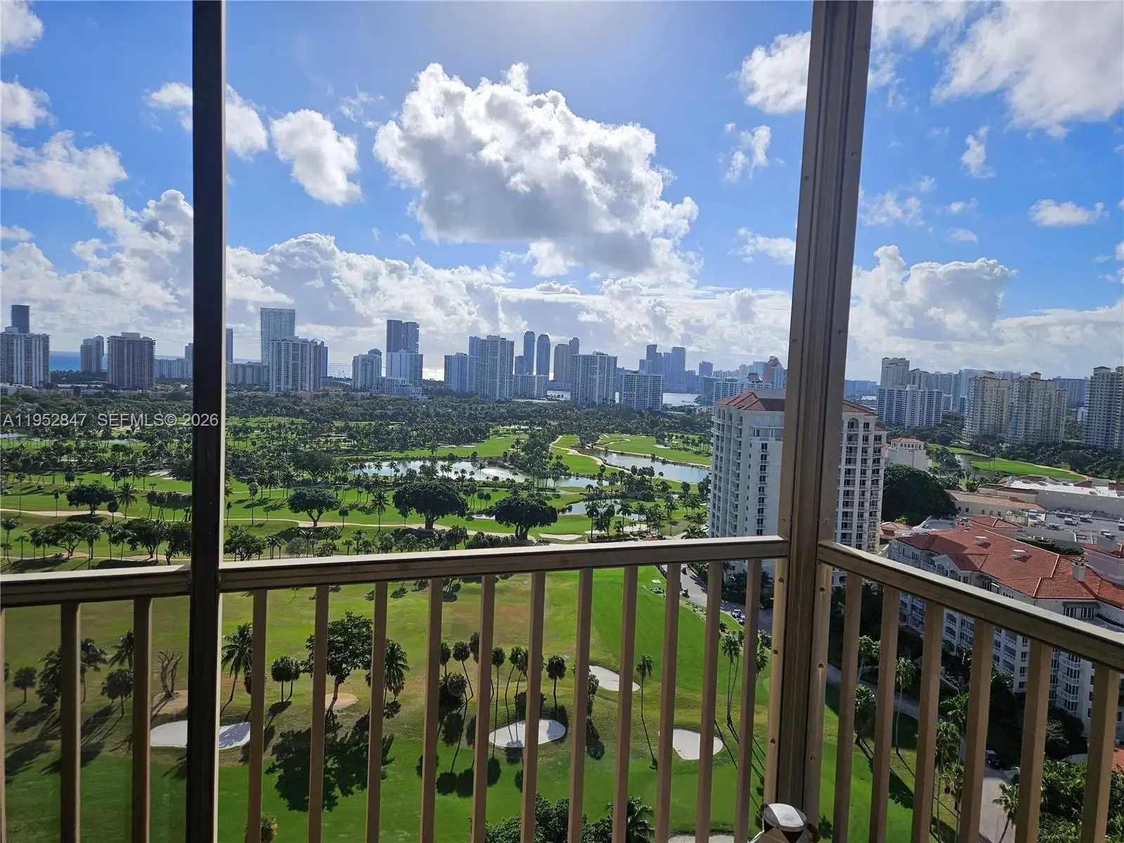 Perched on the 25th floor of a 27-story tower, this spacious 1,303sqft 2-bed, 2-bath condo offers sweeping views of lush golf courses & stretches all the way to the Atlantic Ocean. Located in the heart of Aventura, this residence is ideal for those who crave a vibrant lifestyle balanced with tranquil, scenic beauty. Enjoy being behind Aventura Mall, upscale dining, scenic parks, schools, golf clubs, and a diverse selection of places of worship—making this one of the most desirable communities in South Florida. The unit presents a rare opportunity to remodel the space with a custom renovation, turning it into a showplace that fully matches the grandeur of its views. Floor-to-ceiling windows invite stunning natural light throughout, showcasing breathtaking sunrises and sunsets. You can jog or walk along the picturesque golf course path that loops around the area—perfect for outdoor fitness with views. Enjoy close-by padel and tennis courts for an active lifestyle. This property delivers location, potential, and undeniable value. The well-maintained building features resort-style amenities including 24-hour security, concierge, a fitness center, pool, and more. This is the perfect opportunity to create your ideal South Florida home with an amazing view!